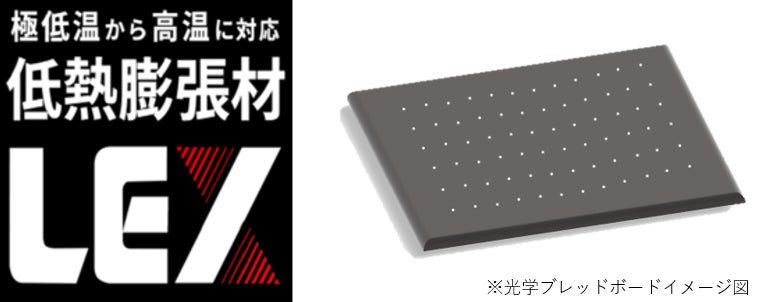 「LEX(R)」は、“温度変化による伸縮がほぼない”という特性を持つため、微小なズレが大問題に発展してしまうような精密機器に適しています。具体的には、光学ブレッドボード*等の実験プラットフォームからウエハ検査装置、フォトマスク検査装置、プローブカードといった、半導体・光学・宇宙航空分野などの精密機器・装置で活用可能です。