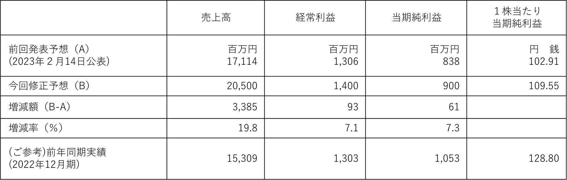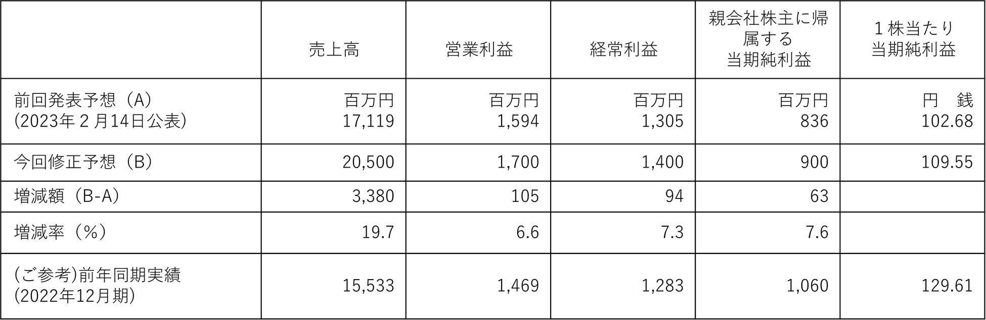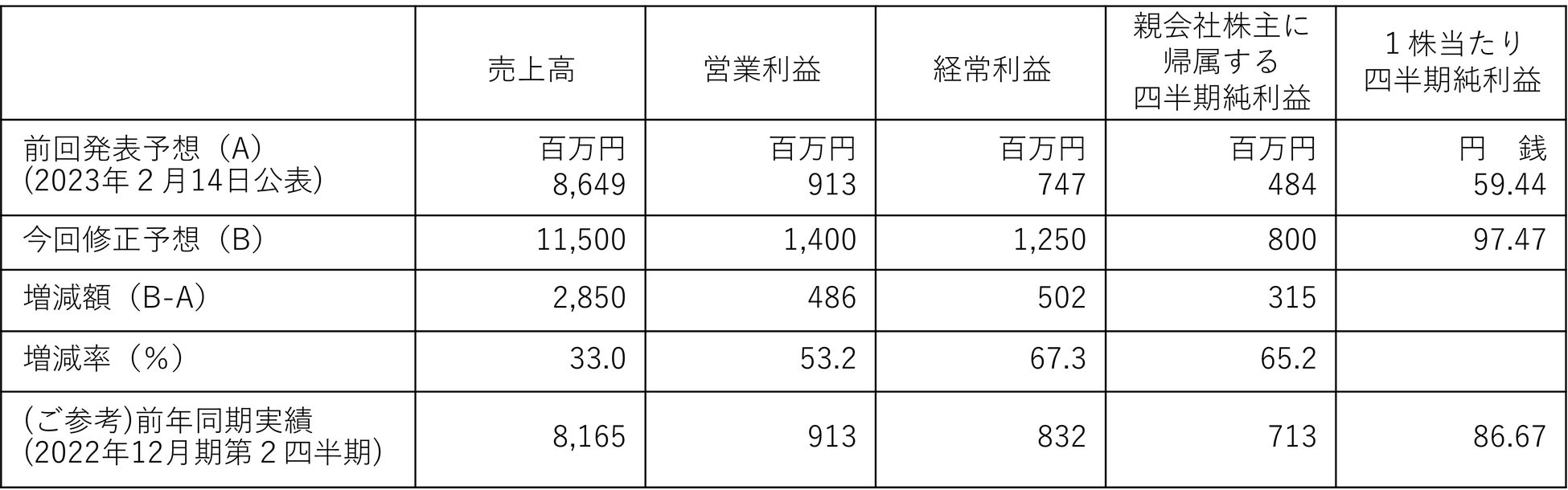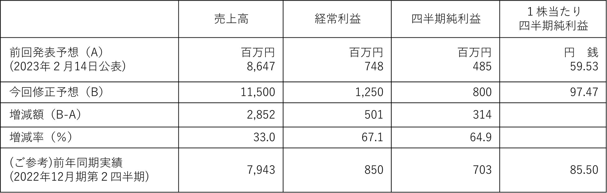 2023年12月期第2四半期及び通期業績予想の修正に関するお知らせ