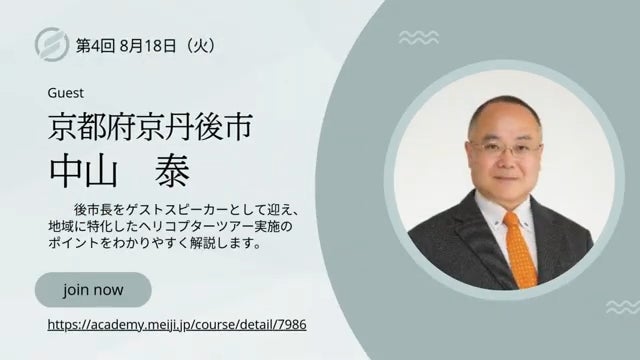 「地方でヘリコプターを活用する」には仕組みがあります。そのコツを知ることで、どう関わったら良いのか。その仕組みと働き、活かすコツを「自治体・連携企業」をゲストに迎え、基本理論と実践ポイントをお伝えします。