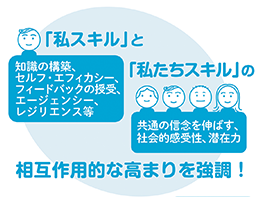 「私」スキルとは,エージェンシーやレジリエンス,コミュニケーションスキル等で,「私たち」スキルは,共通の信念をもつことや社会的感受性,潜在力等であり,それらが具体的にどのようなスキルかが本書では説明されています。これらは2つに分離し独立しているのではなく,むしろ互いに補い合うものであり,これらが結集したときに,子どもたちはグループでの取り組みや成功に貢献するスキルや確信をもてるようになると述べられています。「私」スキルと「私たち」スキルが相互作用的に高まりコレクティブ・エフィカシーが向上することによって,グループだけではなく個人の自信(セルフ・エフィカシー)を高めることにもつながります。本書の後半ではそれらのスキルを高める学習や課題をどのように設計するか,コレクティブ・エフィカシーをどのようにアセスメントするのか等,具体的に解説されています。