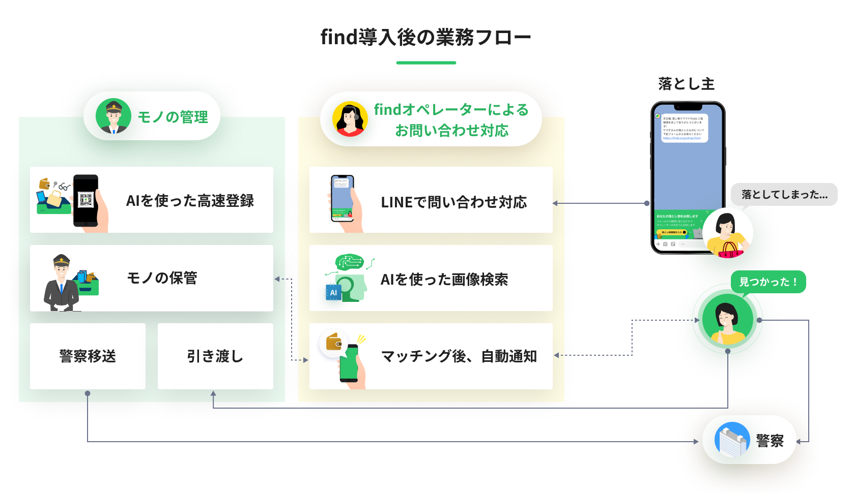 スマートな落とし物対応業務を実現します。(下記イメージ図)