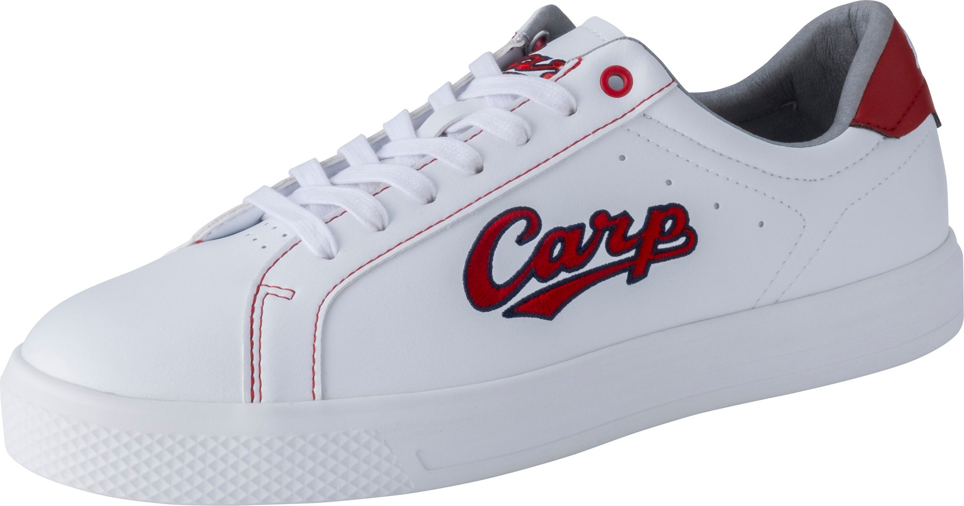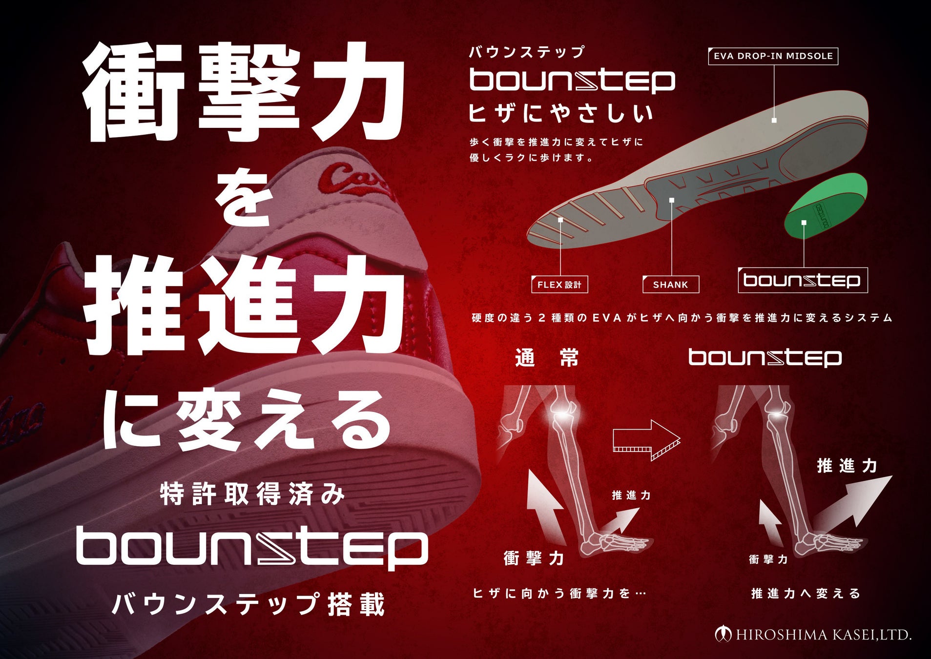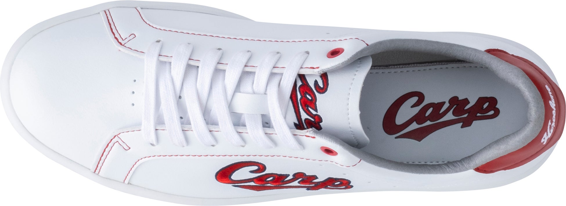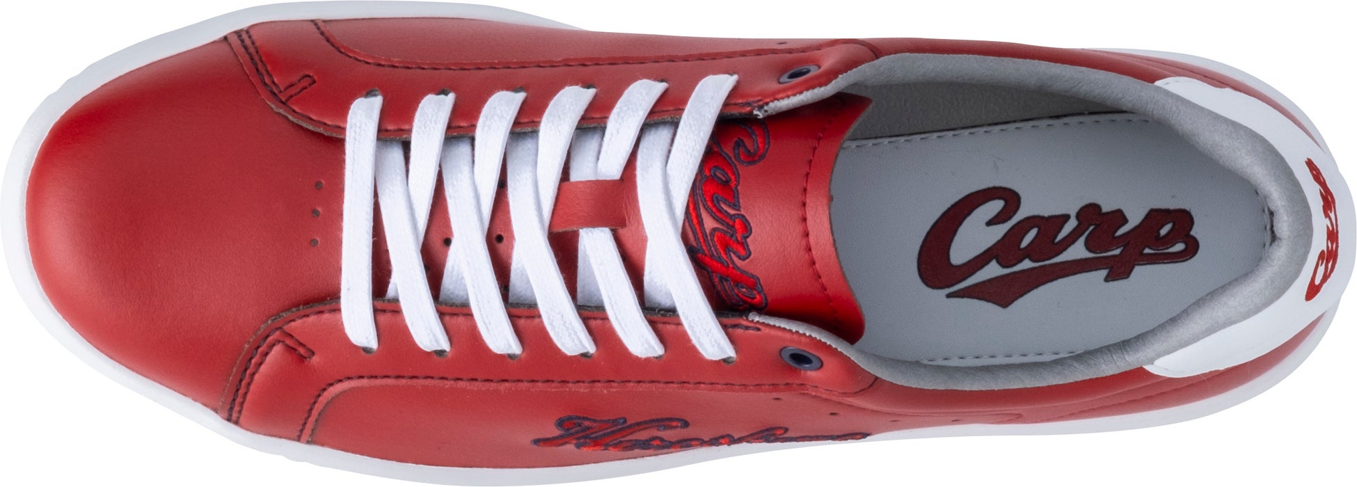 カープシューズ005はベーシックなコートタイプのカジュアルシューズで、白と赤のカラーバリエーションや替えヒモなど、カープの応援がもっと楽しくなる広島東洋カープ承認のオリジナルシューズです。球場での応援はもちろん、"歩く"ことにフォーカスした広島化成の特許技術『bounstep(バウンステップ)』機能を搭載。23.5cmから30cmまで幅広いサイズレンジを用意してますので、ご家族やペアでもお楽しみいただけます。