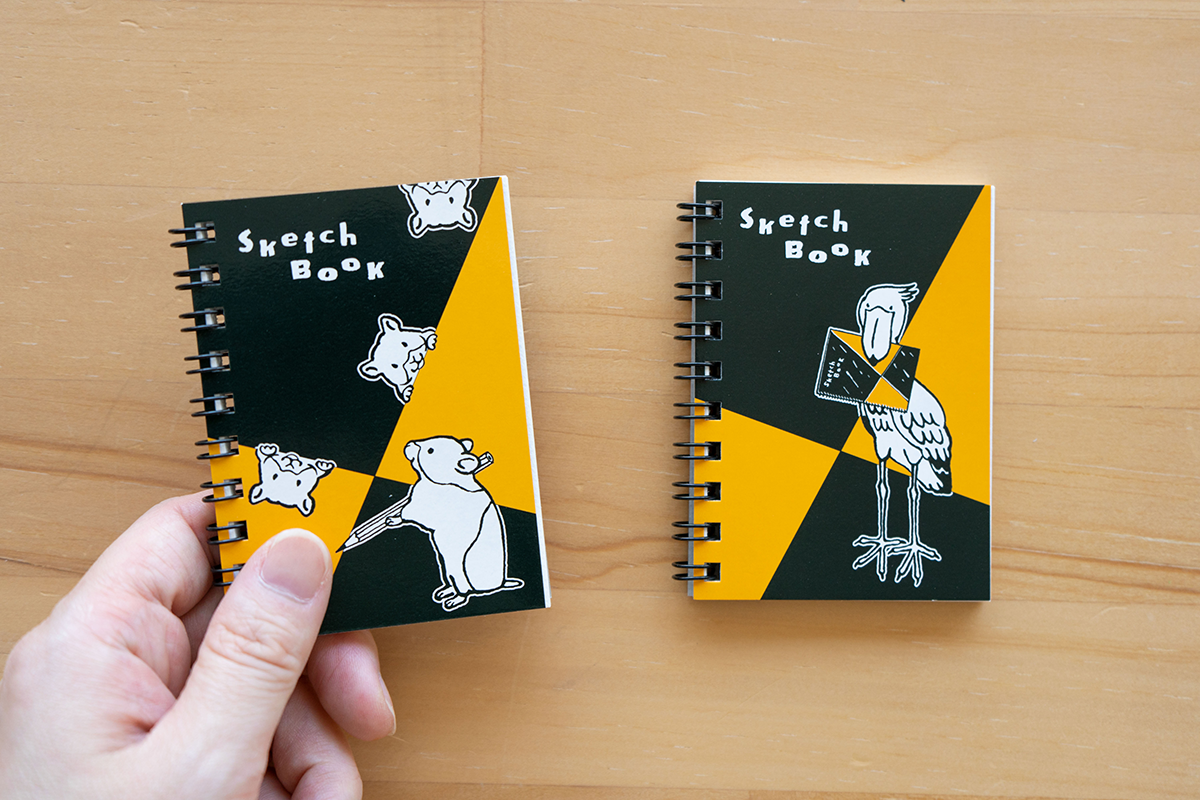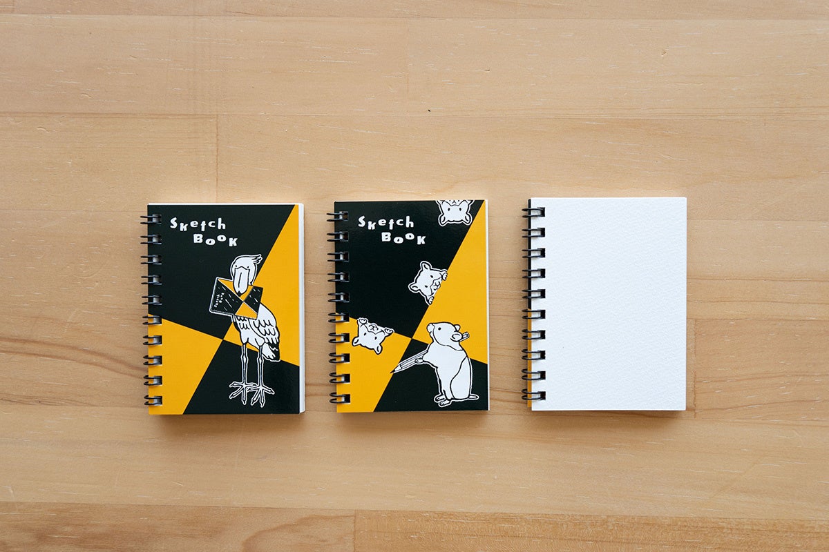 昨年の「スケッチブックの日」の限定品でもご好評だった、手のひらサイズの「図案スケッチブック」です。あたたかい手描きのタッチが魅力の人気イラストレーター「浅野みどり」さんとコラボレーションをしました。「図案スケッチブック」をくわえた動物のイラストがポイントになっています。