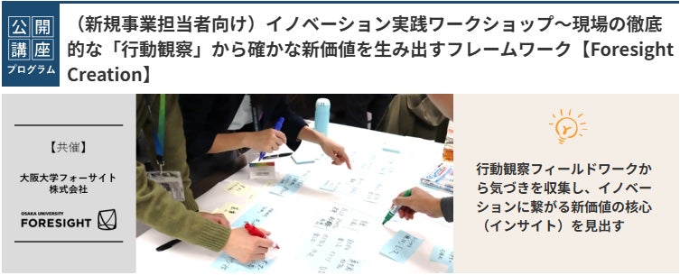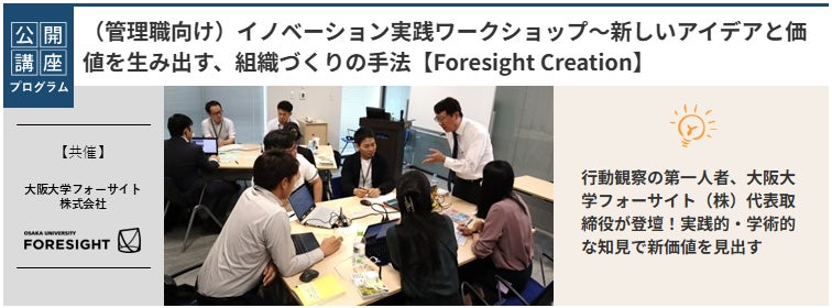 大阪大学フォーサイト株式会社(大阪府吹田市、代表取締役:松波晴人)は株式会社インソース(東京都荒川区、代表取締役執行役員社長:舟橋孝之)と「Foresight Creation」を学ぶ公開講座を共催します。