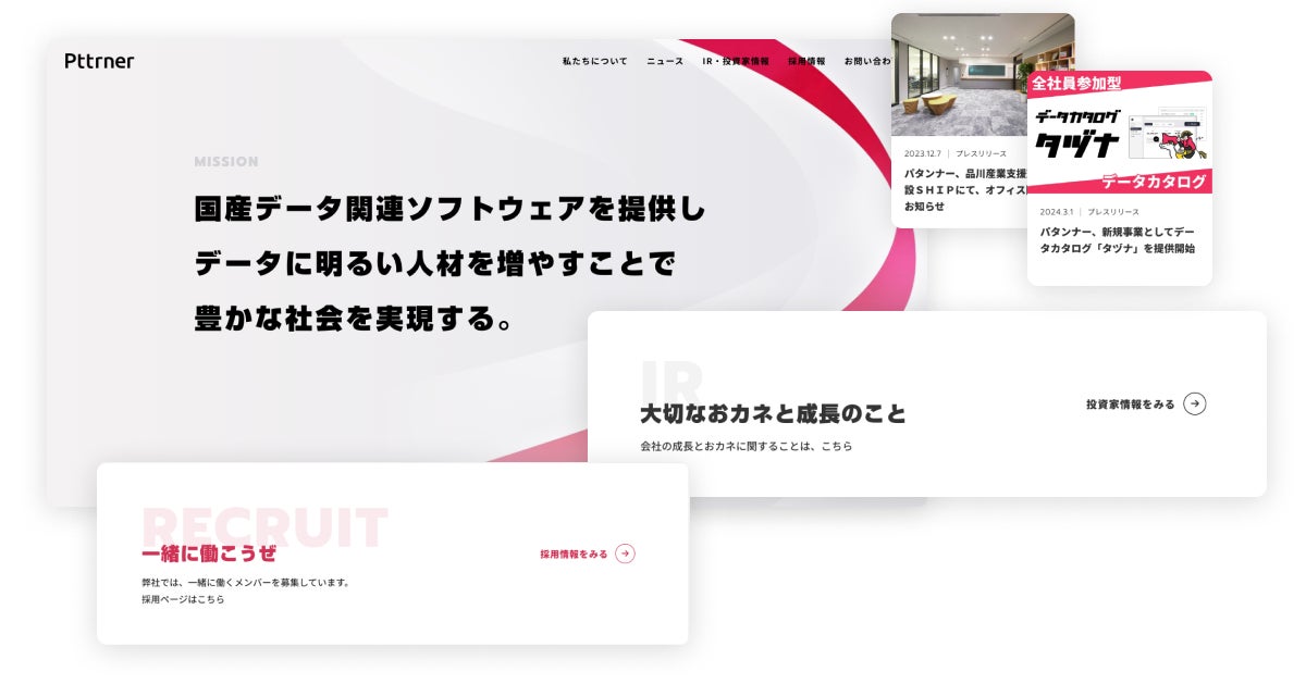 データカタログ「タヅナ」を運営する株式会社パタンナーは、コーポレートサイトをフルリニューアルしたことをお知らせいたします。