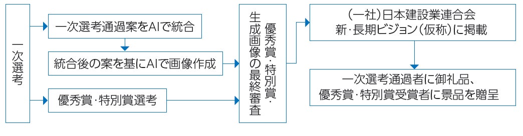 選考は、日建連会員企業及び日建連事務局から成る「新・長期ビジョン(仮称)」の検討チームにて実施します。