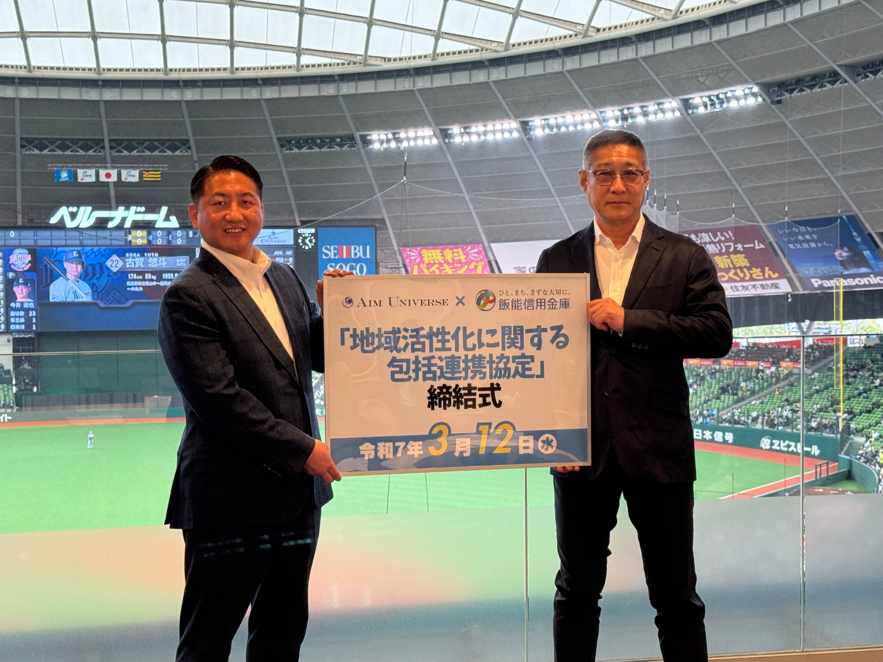 一都三県・沖縄を中心に屋上付き戸建住宅を販売する株式会社アイム・ユニバース(所在地:東京都杉並区、代表取締役:藍川眞樹)は、2025年3月12日(水)に飯能信用金庫(理事長:松下 寿夫氏)と地域の活性化に関する包括連携協定を締結しました。同日、ベルーナドームにて締結式を行いました。