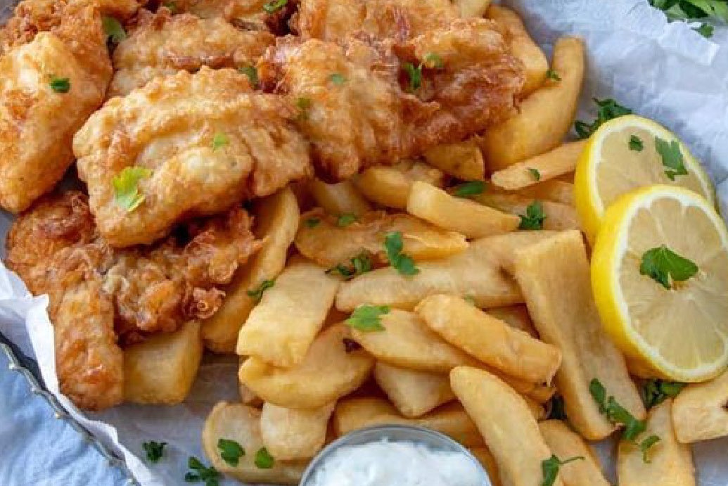 クラシックなイギリスの料理。サクサクとした食感と魚の味わいがワインをより引き立たせてくれます。