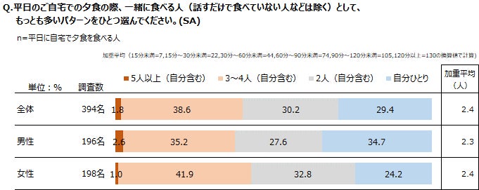 平日に自宅で夕食を一緒に食べる人数の平均は2.4人調理にある程度の手間を掛ける人が多数を占める