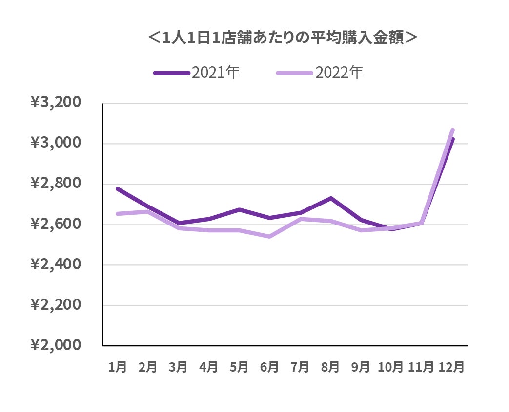 100万人のレシートデータで見る「買い物動向」を毎月発表 2021年と2022年で年間比較、平均単価は” 約4%UP ”2019年の増税以降過去最高値に
