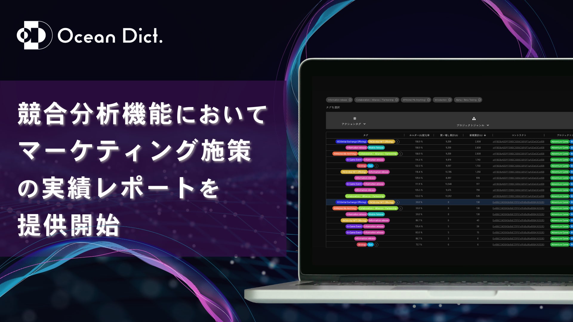 Ocean Dict.、競合分析機能においてマーケティング施策のパフォーマンス実績レポートを提供開始