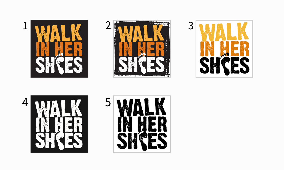 ・ Walk in Her ShoesのロゴをTシャツ前面に入れる。