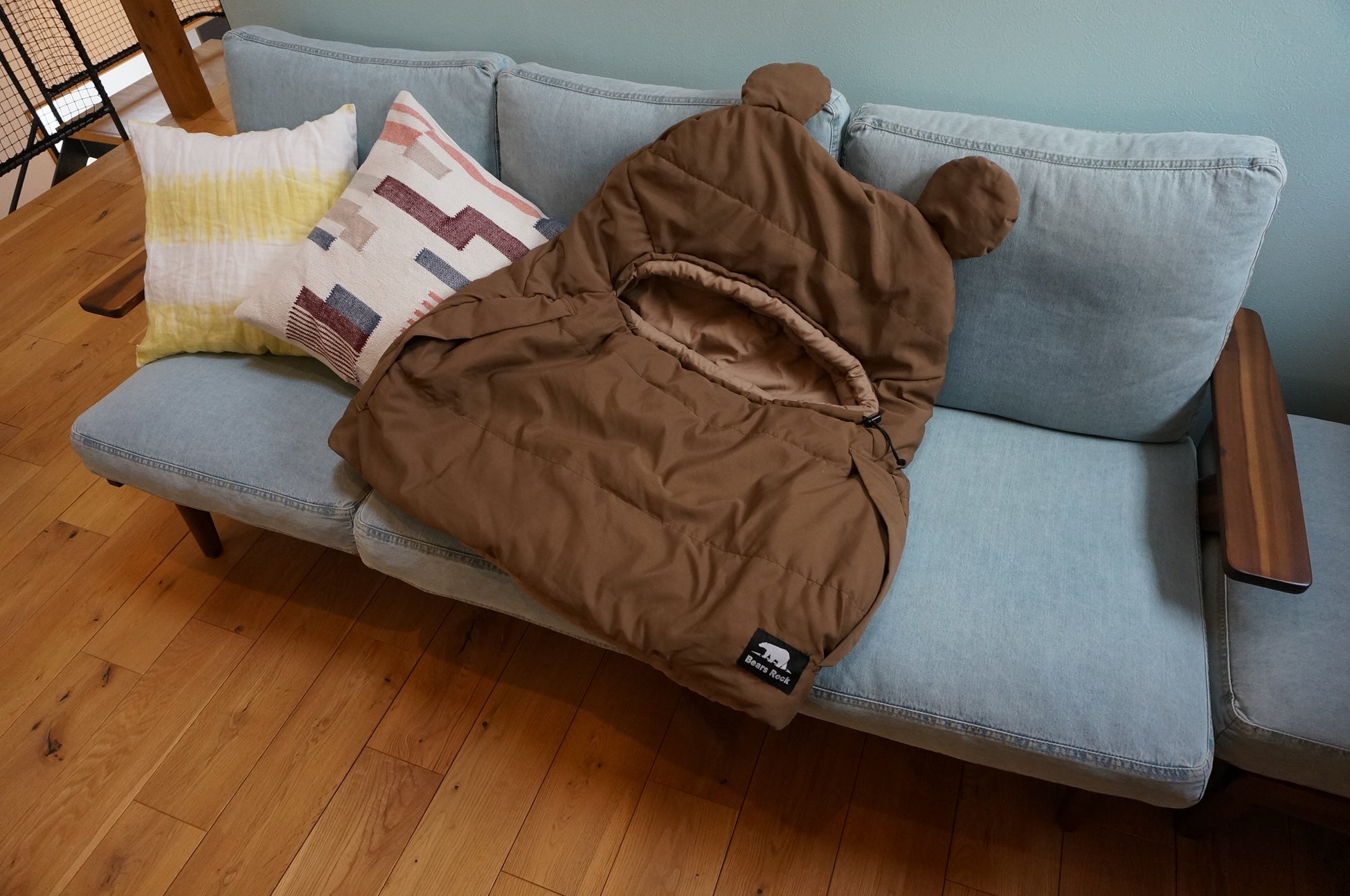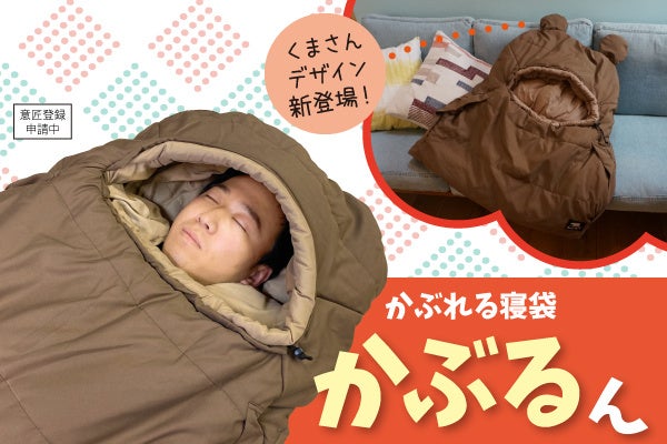 頭や肩からの冷気を防げる、かぶれる寝袋「くまさんかぶるん」は12月15日より発売いたします。