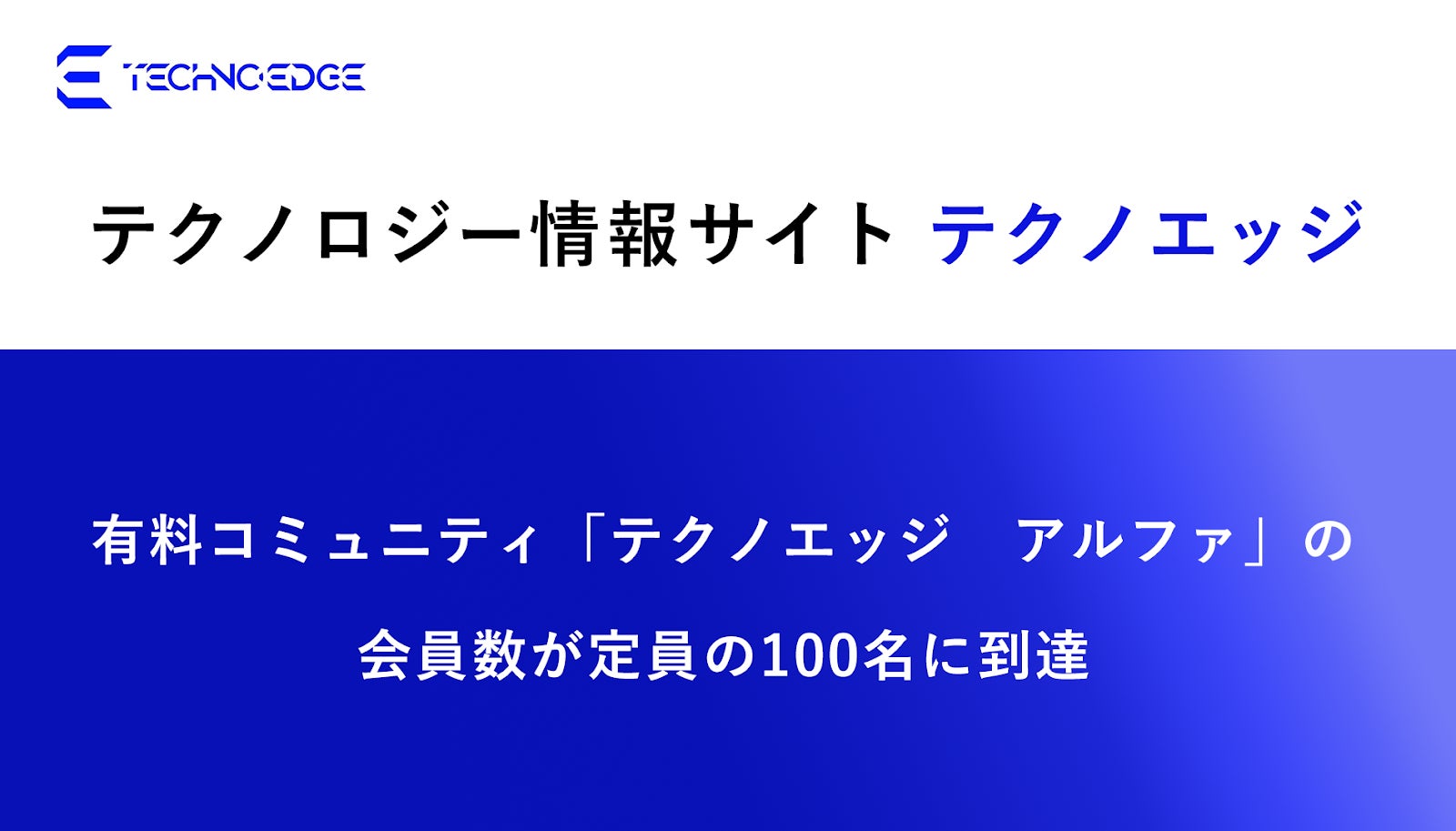 テクノロジー情報サイト「テクノエッジ」の会員制コミュニティ「テクノエッジ アルファ」が定員の100名に到達
