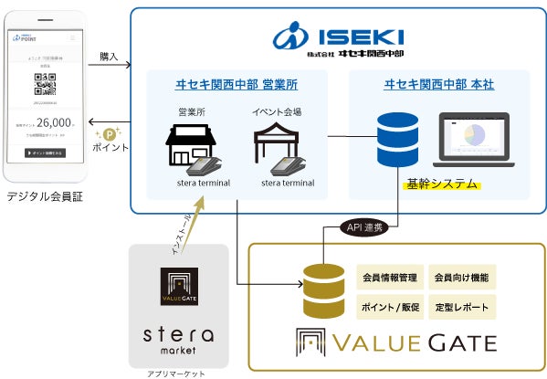 ヰセキ関西中部は、既存顧客との信頼関係をさらに深めるため、そして新たな顧客層にも対応できる施策を模索していました。また、キャッシュレス化の進展に伴い、クレジット決済端末の導入も検討していたことから、決済とポイント処理を効率的に行える「stera market」のポイントアプリ「VALUE GATE」を導入する運びとなりました。