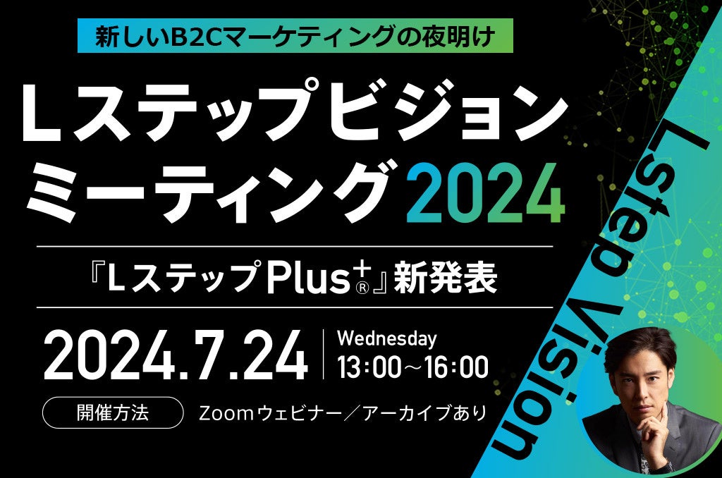 今回のビジョンミーティングでは、「LステップPlus+」の詳細や、2025年以降のB2Cマーケティングの未来像を探求し、皆様のビジネスに新たな風を吹き込むためのヒントをご提供いたします。