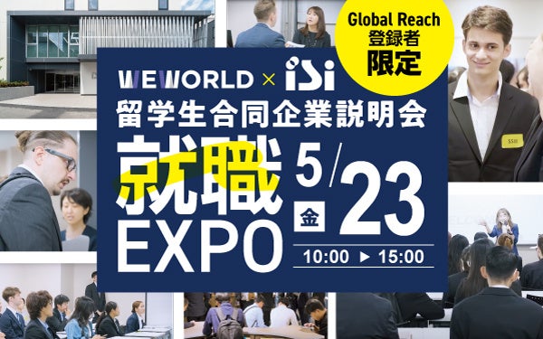 株式会社WEWORLD(本社:東京都新宿区、代表取締役:荻野正昭)は、外国人留学生を対象とした合同企業説明会「就職EXPO in 高田馬場」を、2025年5月23日(金)に開催いたします。