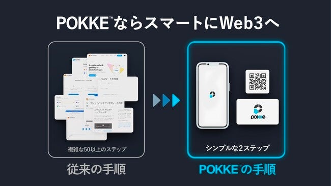 「POKKE」は、NFCを活用したWeb3総合ソリューションです。交通系ICカードと同様の「カードをかざす」というアクションでWeb3における一連の仕組みを体験することができるようになっております。これにより、従来必要な複雑なステップを大幅に削減することができます。