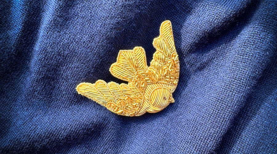 金属製の細いワイヤーや金属糸を布の上にコットン糸で丁寧に固定していく刺繍技法。その歴史は古く、古代エジプトやメソポタミア時代から「富・権力・格式」の象徴として衣装を飾ってきました。中世イギリスでは、インドから伝わった技法をもとに独自の発展を遂げ、王室や教会の豪華な祭服に用いられました。現代においても、軍服や王室衣装、ファッション、インテリアなど幅広い分野で活用されています。
