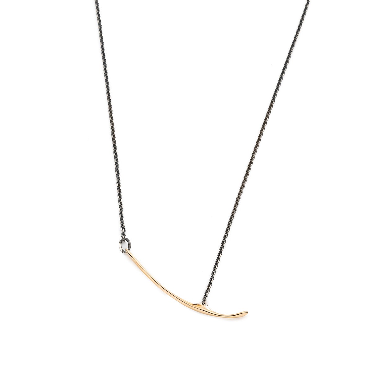 「ピピストレッロ」とは、イタリア語で「コウモリ」を表す言葉。 夜空を軽快に飛びまわるコウモリへの憧れを表現したデザインが特徴です。 果実を食べ森に暮らす大型のフルーツバットからインスピレーションを得て、翼手の第一指にあたる鉤爪をモチーフにしています。 このコレクションは、デザイナーの井上寛崇が 2010年頃に小さなアトリエで数本の工具を駆使して作り上げた、 ごく限られた数のネックレスにルーツを持ち、井上自身がワックスから削り出しています。 オキシダイズドすることでマットブラックに仕上げたシルバーの重厚感と、 イエローゴールドの明るい輝きのコントラストが、新しい定番の予感。 この抜けのあるモード感を中心に据える事で、より自由度の高いスタイリングを可能にします。