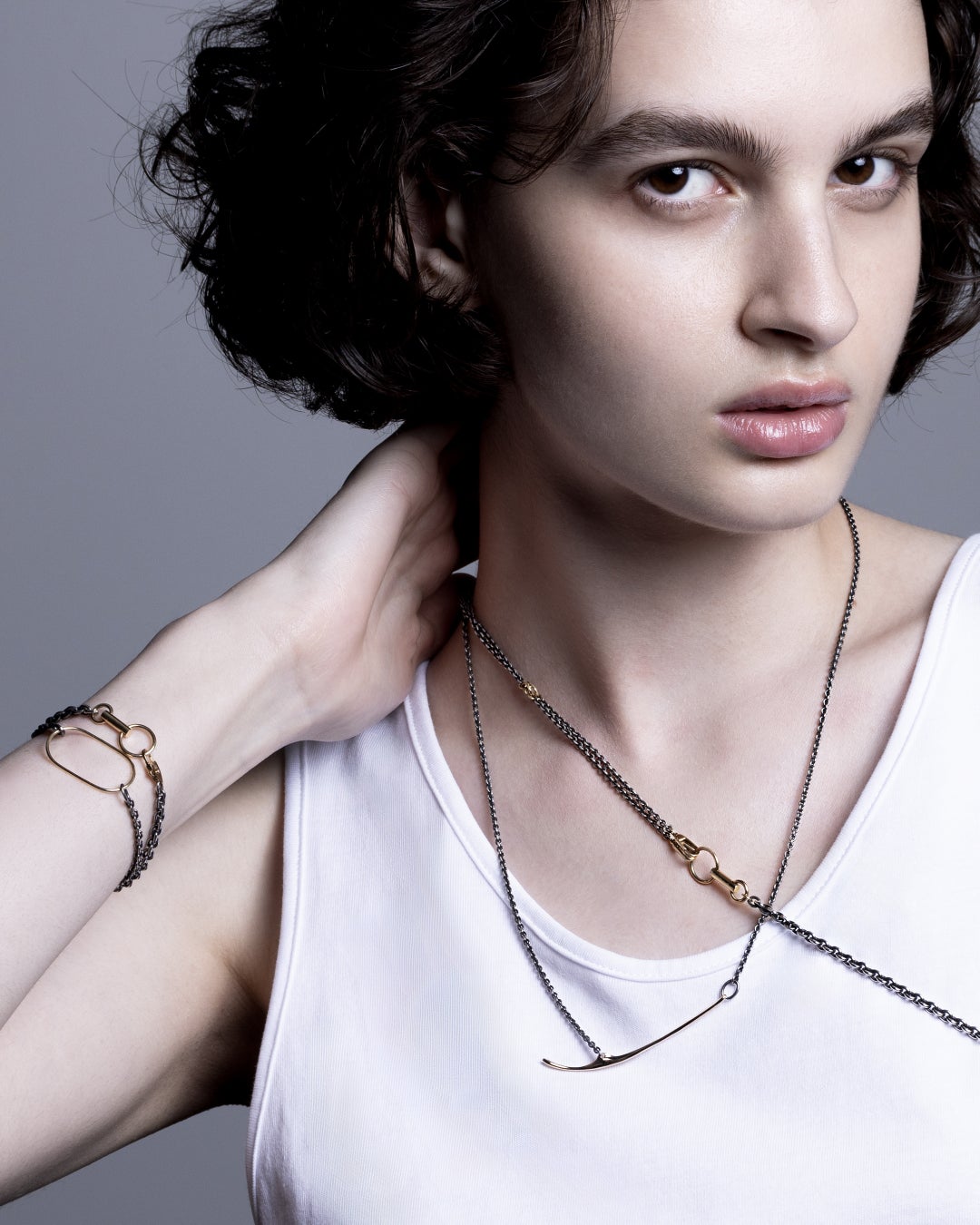 アートにはジェンダーの枠組みがなく、もとよりジュエリーの着用に関して男女差を前提にしていないHirotakaですが、 より自由な発想から“Pipistrello”コレクションは生まれました。