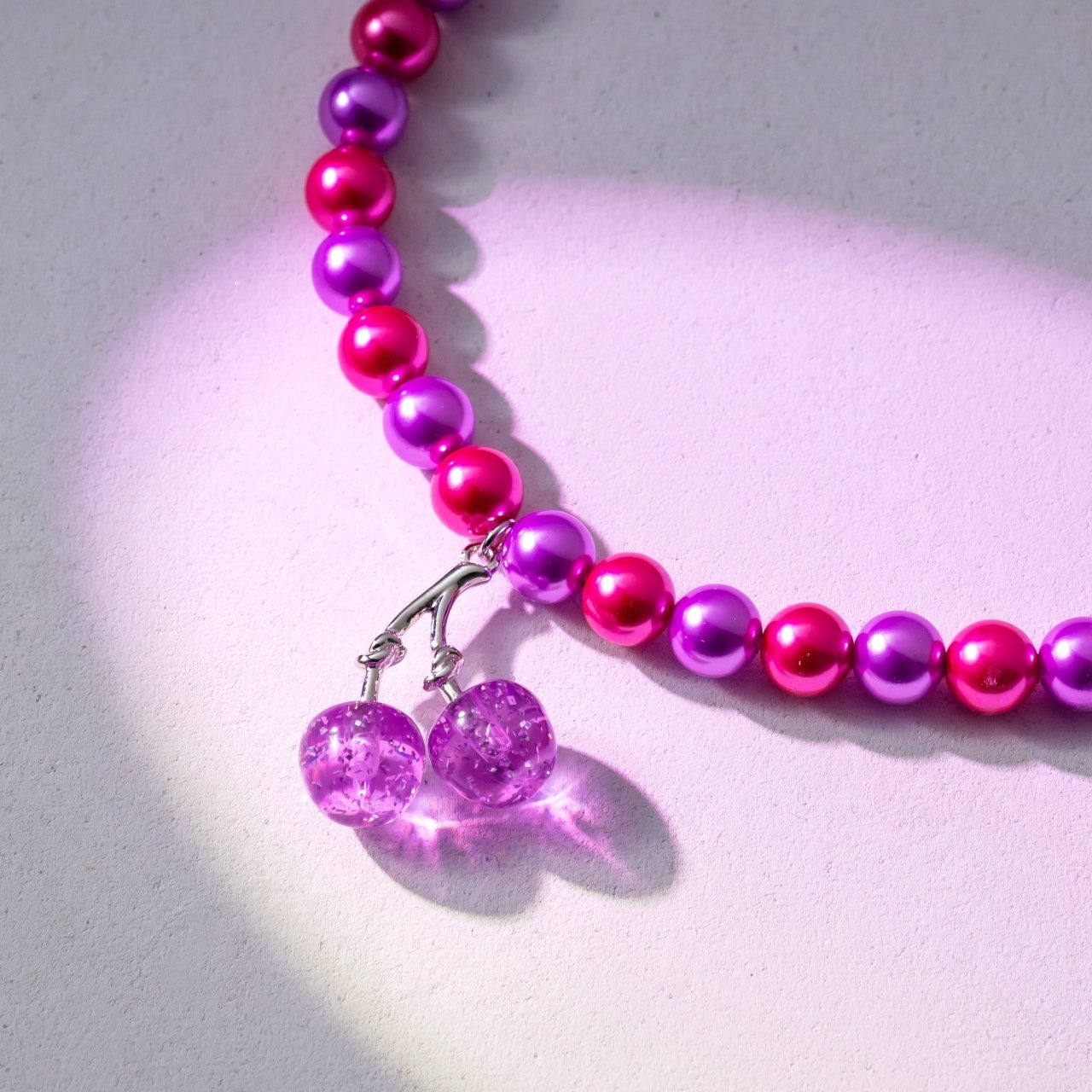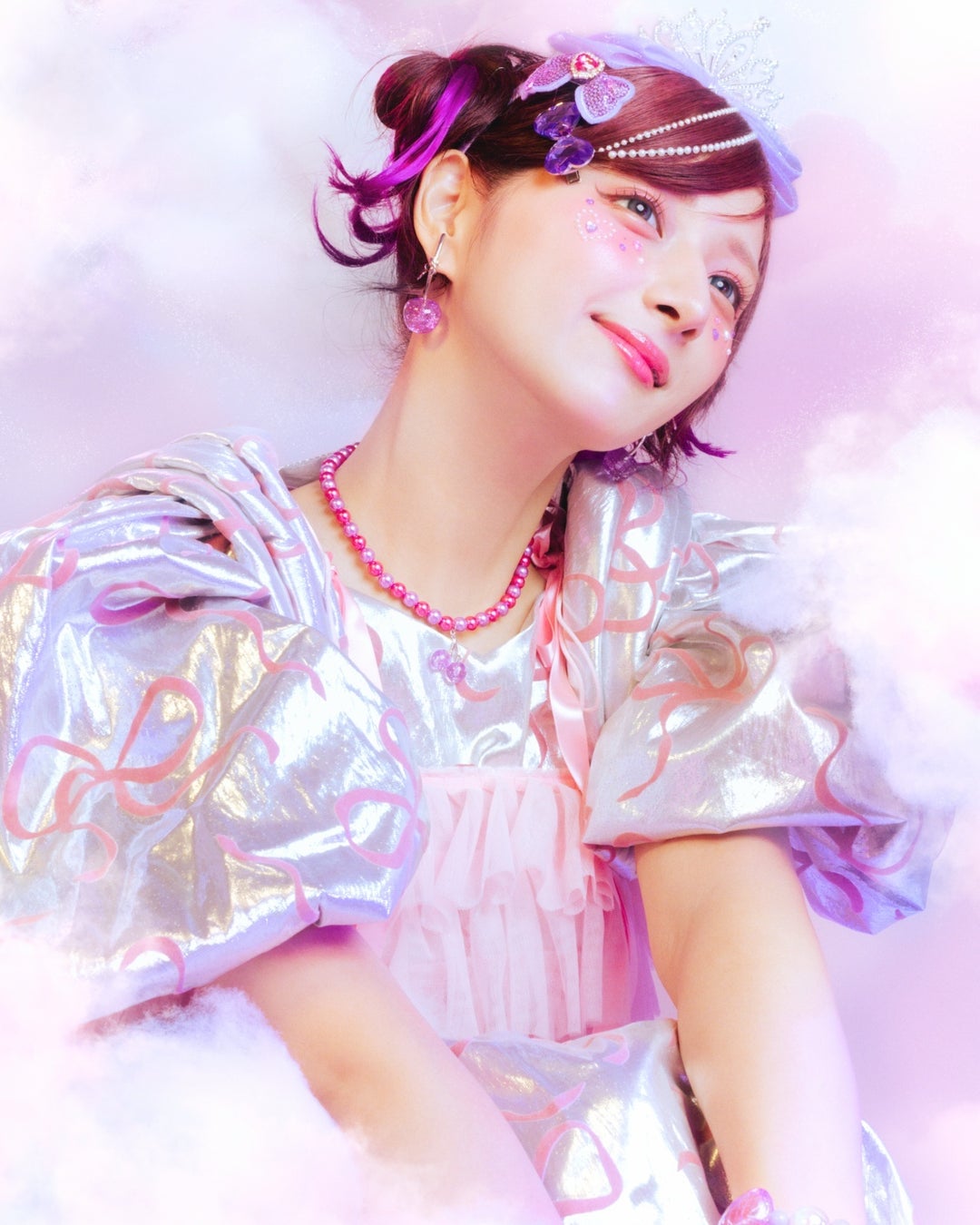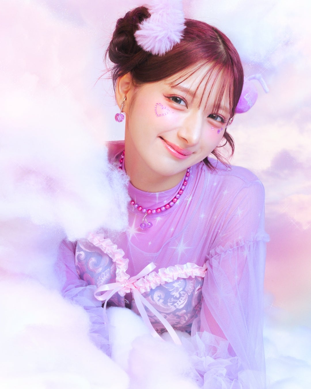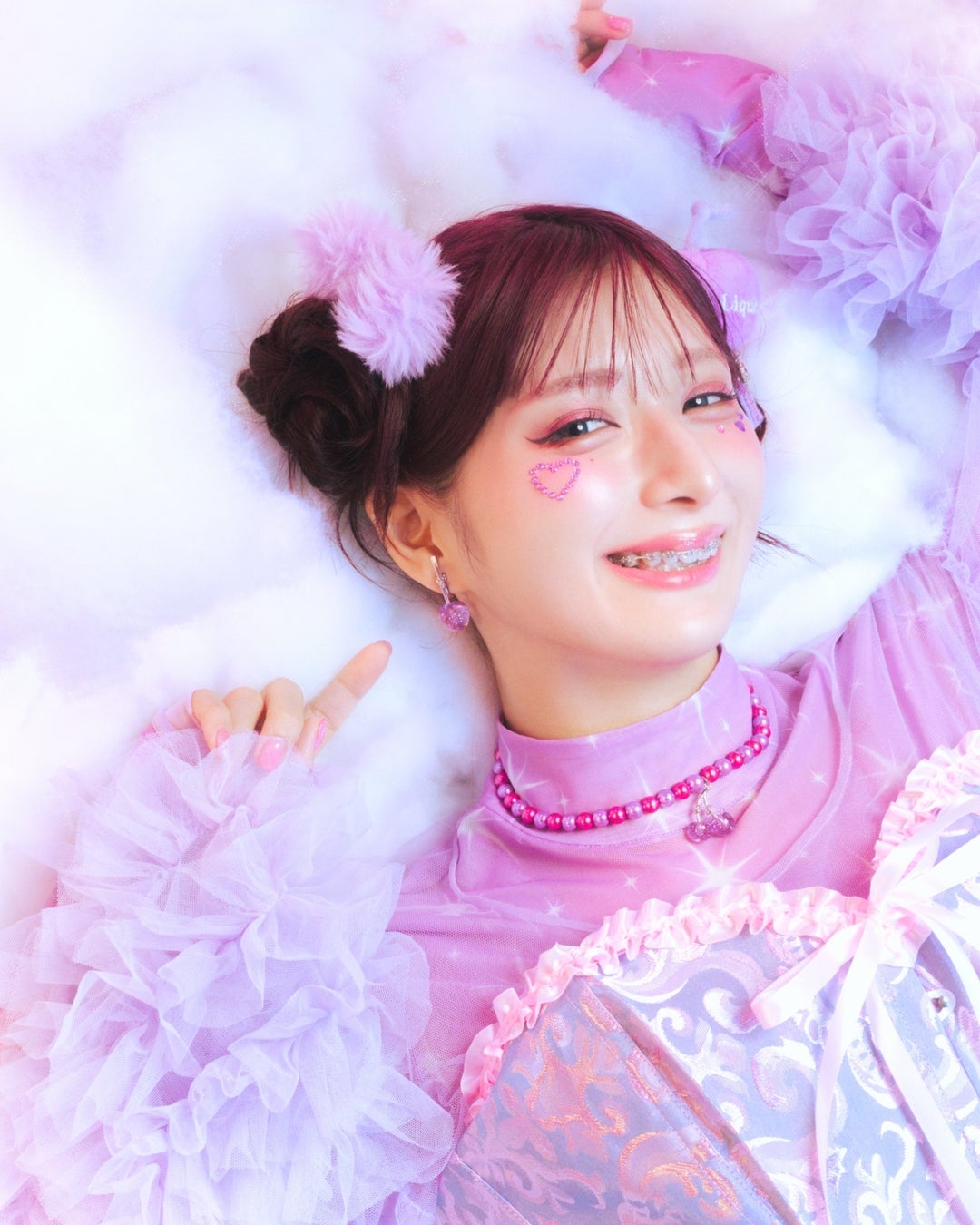 パール部分のカラーは、しなこさんがセレクトしたピンクとパープルを採用。鮮やかで可愛らしい配色が、カラフルなお洋服にも負けない存在感を放ちます。