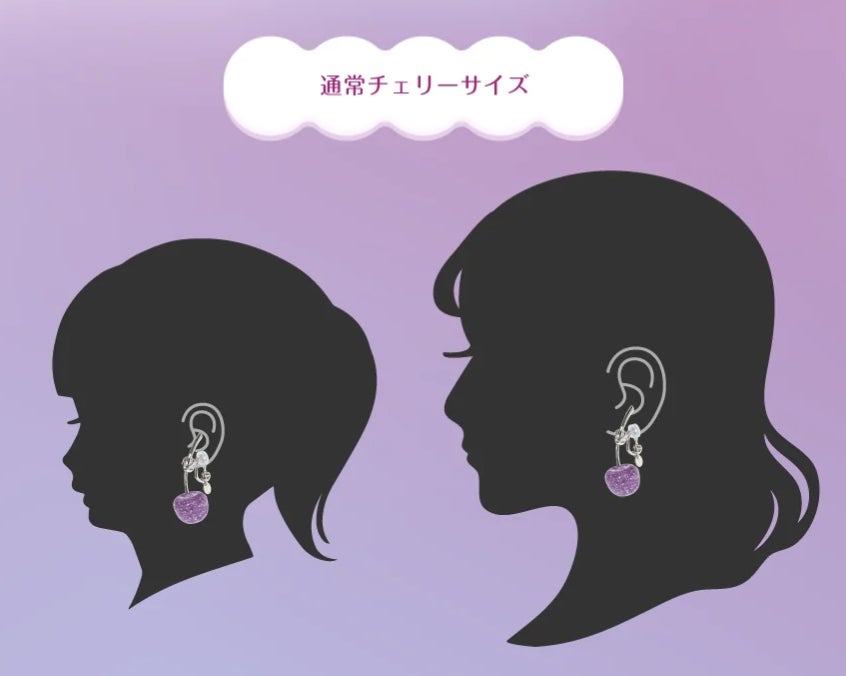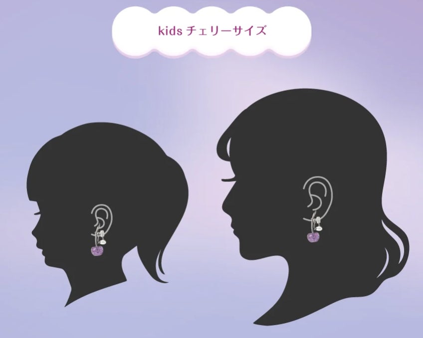 本コラボでは、しなこさんのファンであるお子様と親御様が一緒に楽しめるよう、チェリーのイヤーアクセサリーを2サイズでご用意しました。