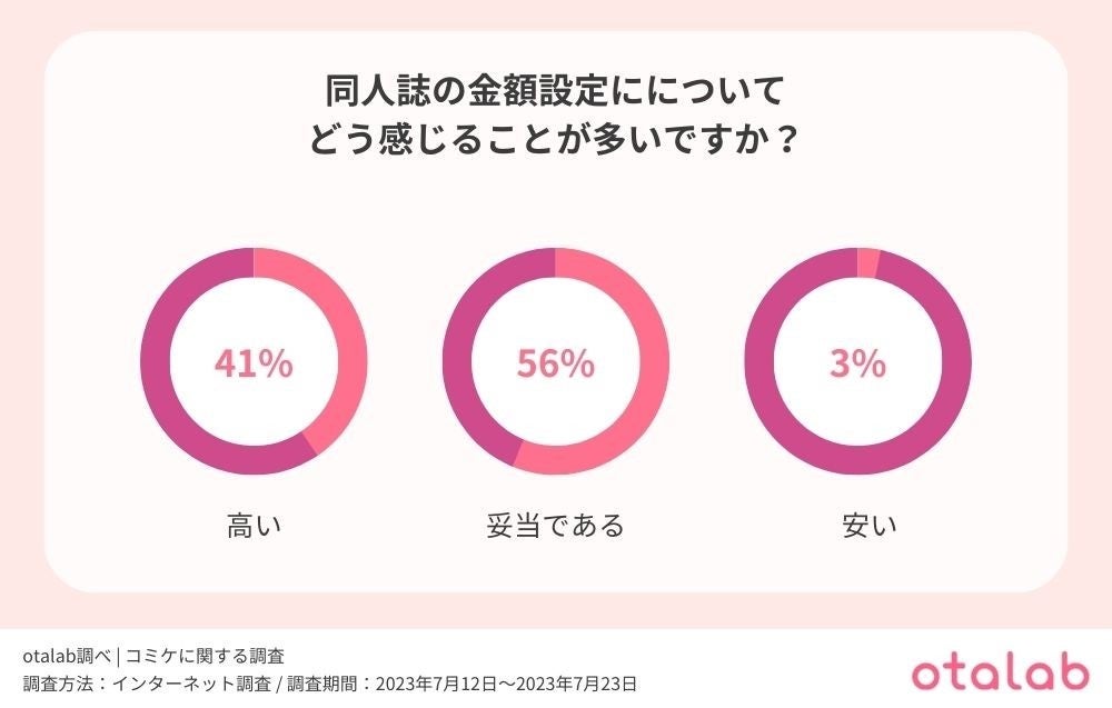 同人誌の価格設定について『高い』と感じている人が4割以上