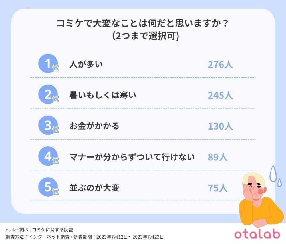 最後に、コミケに行くにあたって大変なことは何なのかを知るべく、調査を行った。