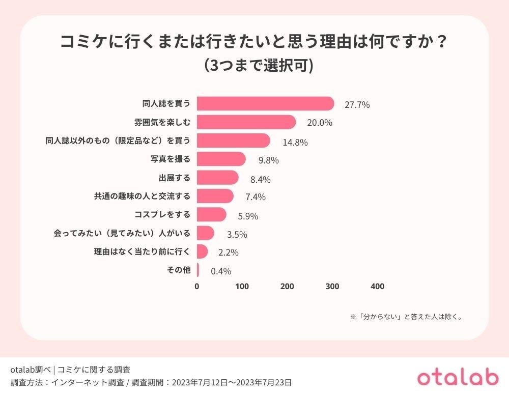 コミケに行く理由の1位は『同人誌を買うため』2位は『雰囲気を楽しむため』