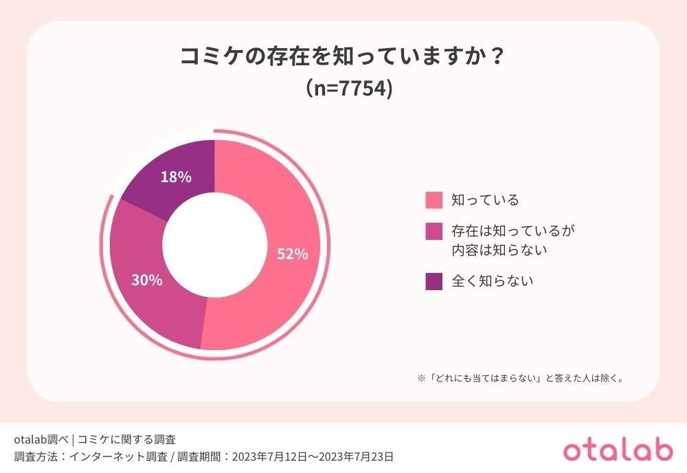 結果を見てみると、『知っている』と答えた人が52%、『存在は知っているが内容は知らない』と答えた人が30%となり、『10代~40代の8割以上がコミケの存在を知っている』という実態が明らかになった。