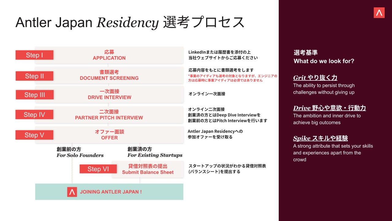 ・Residency期間中、Antler Japanオフィスにてフルコミットで参加可能なこと