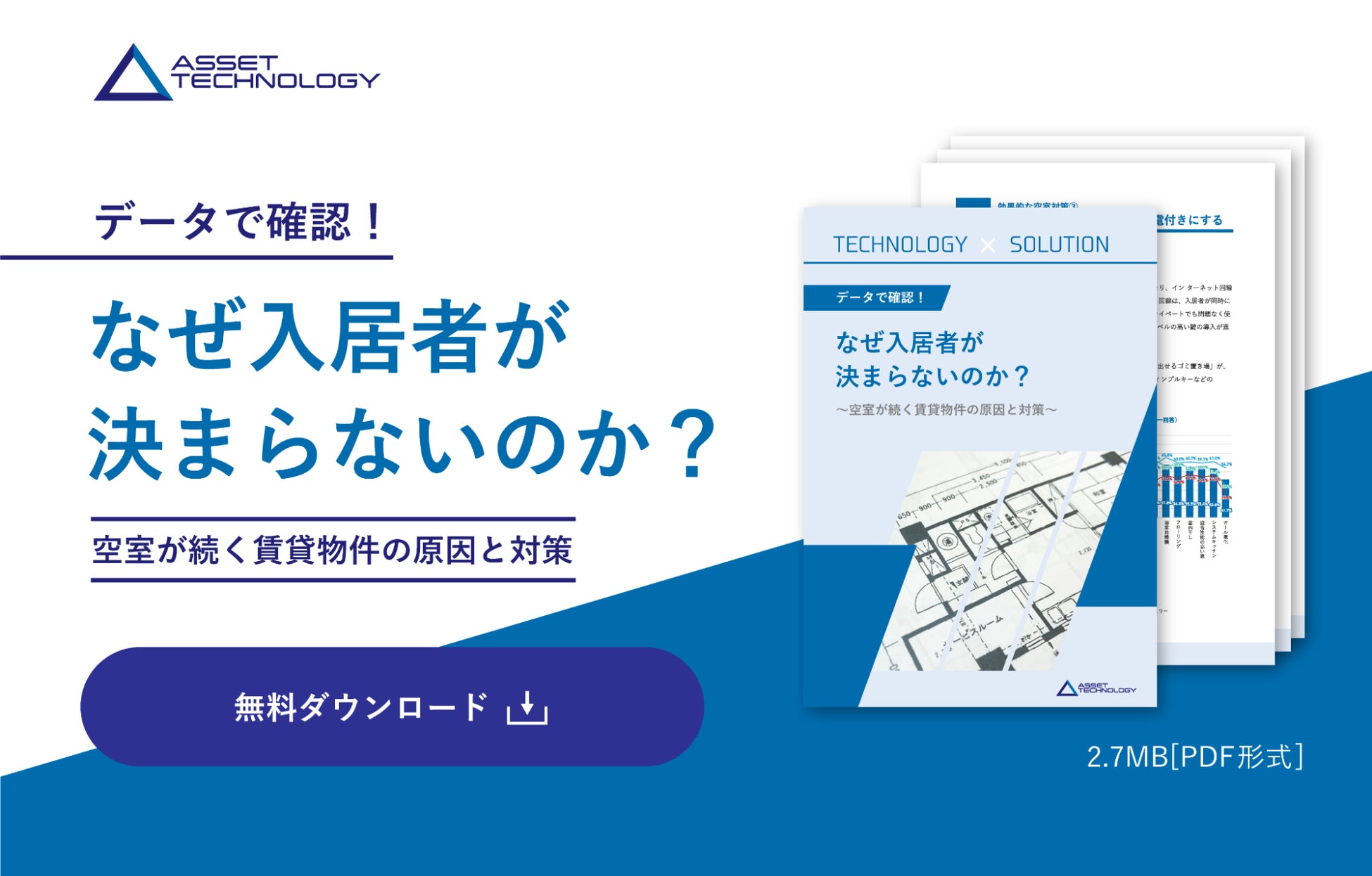 アセットテクノロジー株式会社(本社:⼤阪府⼤阪市、代表取締役:宮本泰光、https://assettech.co.jp/service/) は、投資不動産物件の空室回避に関するノウハウ提供を目的とした「なぜ入居者が決まらないのか?〜空室が続く賃貸物件の原因と対策〜」解説ガイドを無料公開しました。
