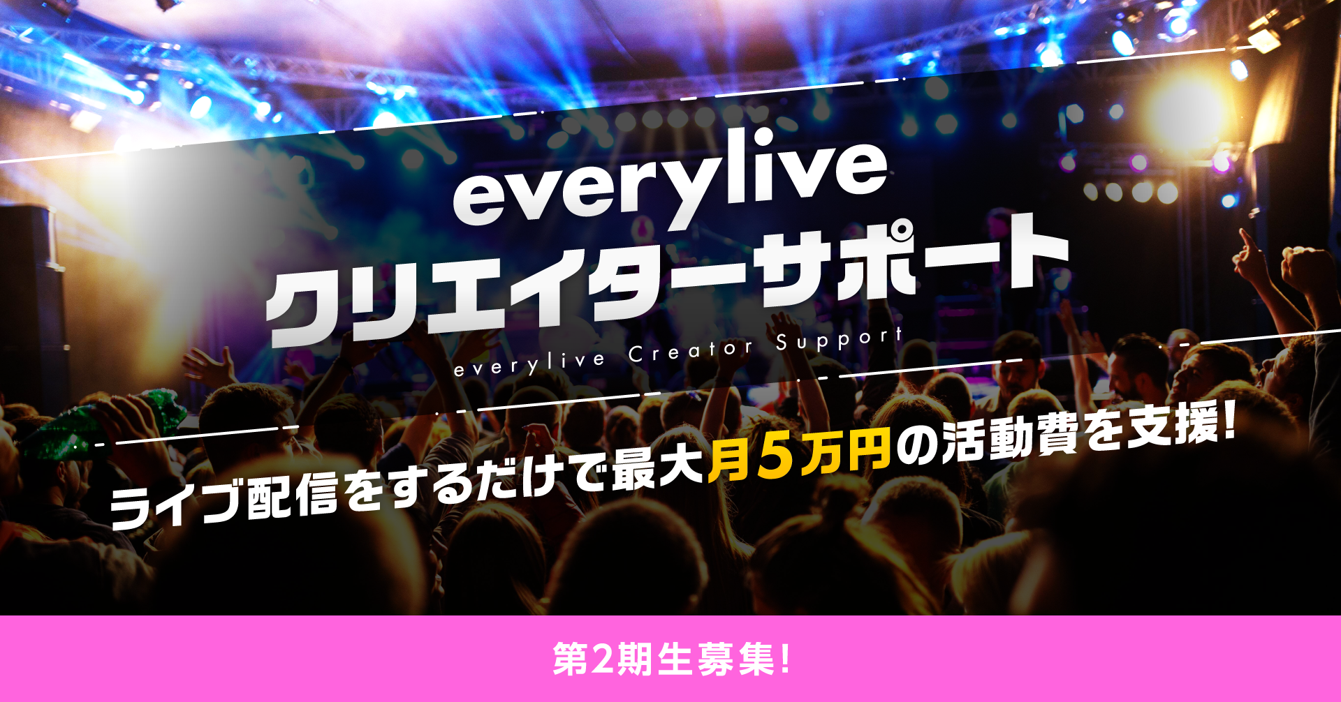 ライブ配信アプリ「everylive」配信クリエイターの活動を支援するプログラム「クリエイターサポート制度」を実施中!ご好評につき第2期生の募集が決定!