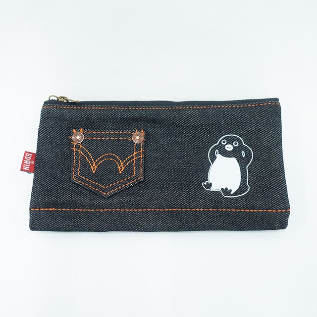 EDWINのブラックデニムとヒッコリー生地を使用。SuicaのペンギンのワンポイントとEDWINデニムを再現したポケット付き!リベットももちろんEDWIN製です!
