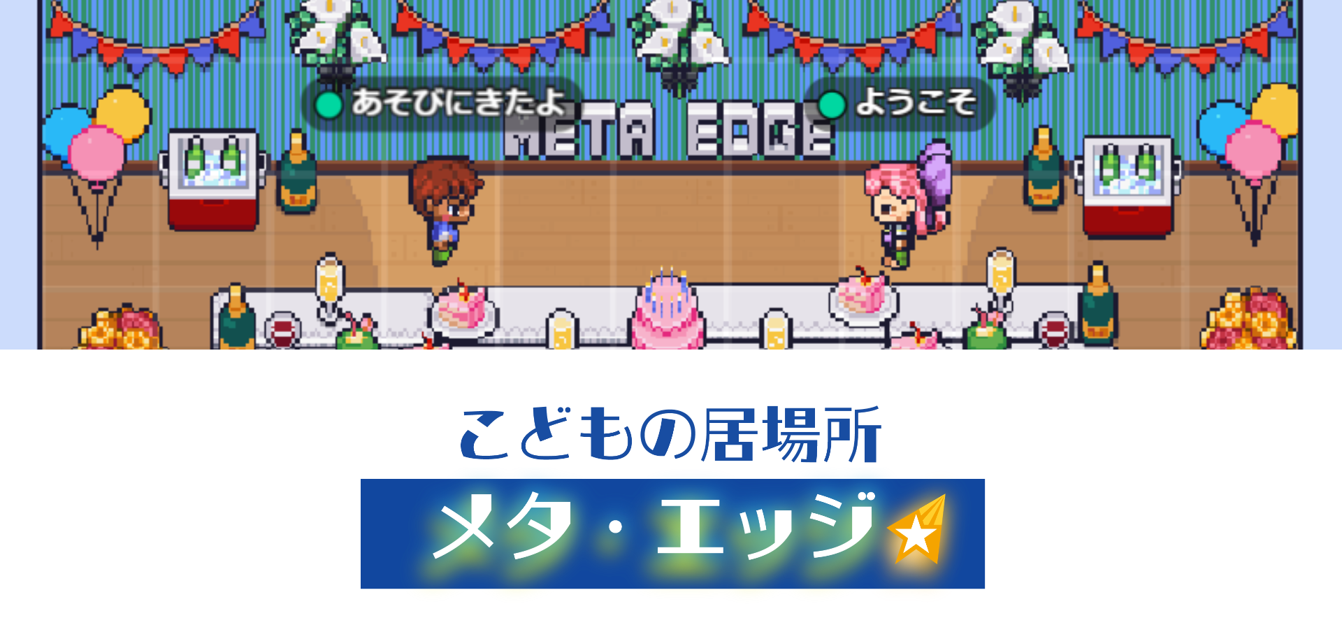 「メタ・エッジ」は、18才までの「読み書きの困難さ」のあるこどもが、こどもたちの意見でつくっていくWEB上の仮想の街です。アバターになって歩き、みんなと声や文字で話す、あそぶ、ほっとできる部屋をつくる、ディスレクシアの先輩に聞いてみる、アートを発表するなど、こどもたちがやってみたいイベントを実施します。