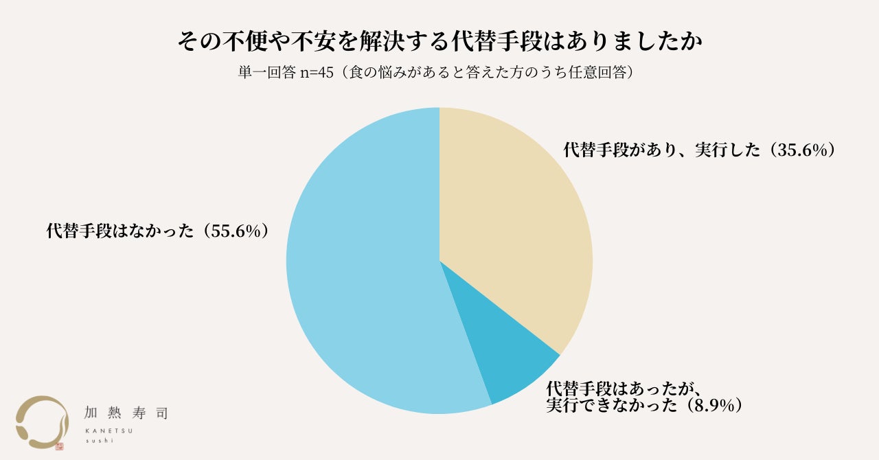 ・64.5%が「食の不安」に対する代替手段がないか、あっても実行できないと回答し、6割以上が医療者への相談もしていない状況