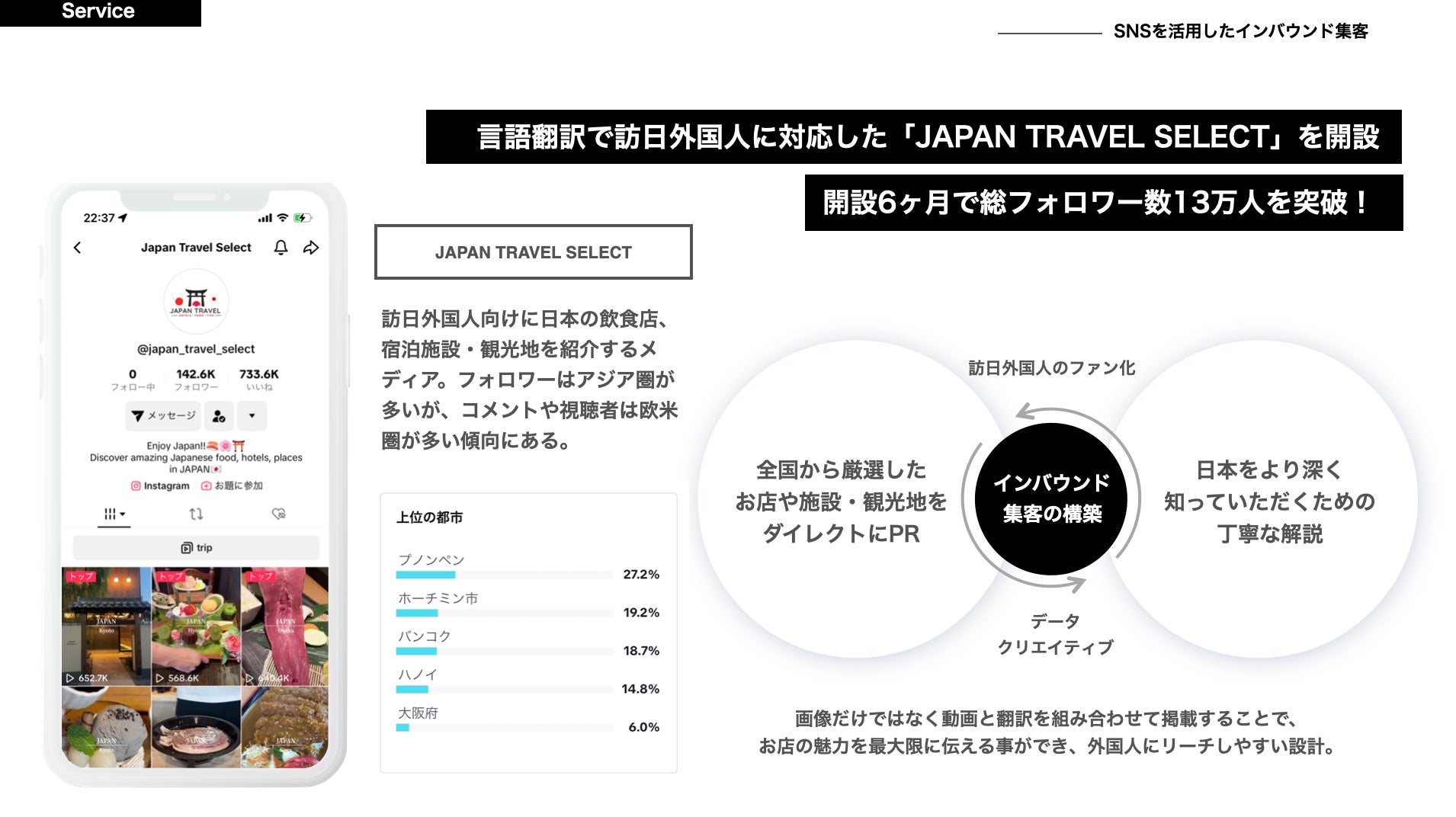 開設半年で月間リーチ数600万、フォロワー数14万人のインバウンドに特化した「JAPAN TRAVEL SELECT」を運営