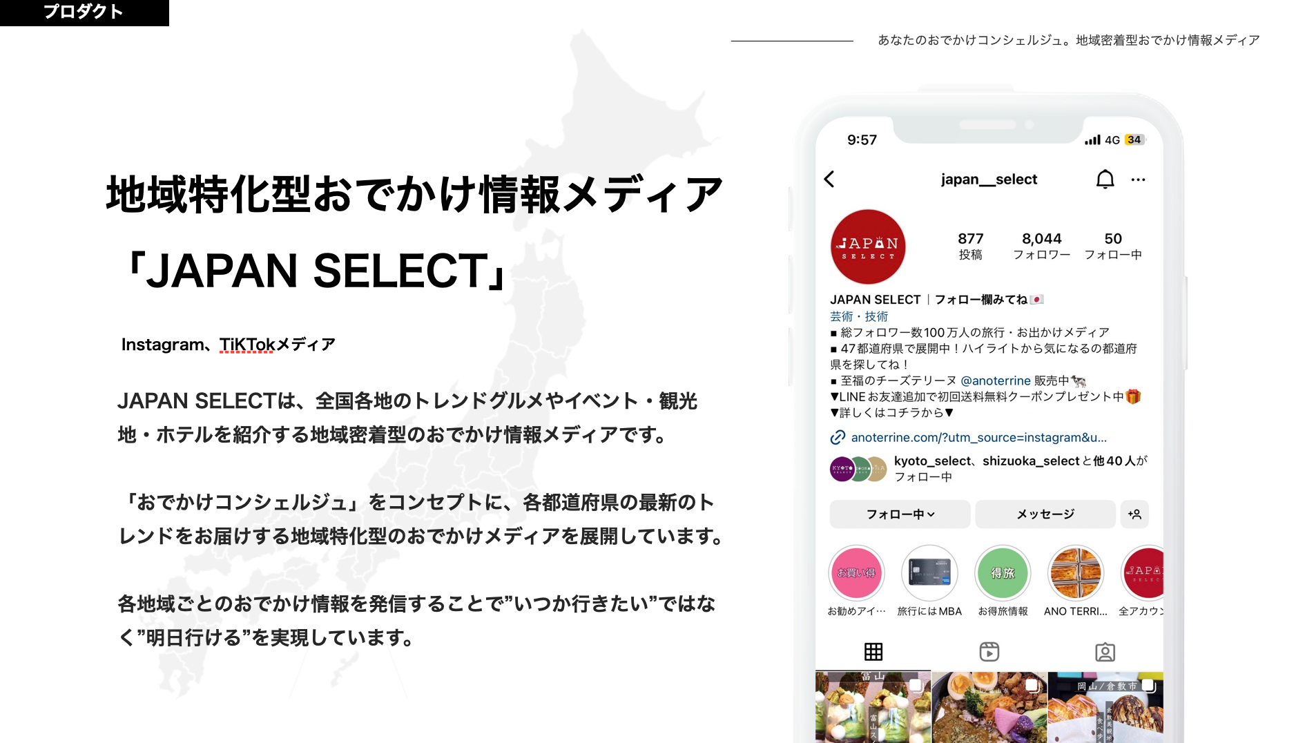 47都道府県各地域に特化したメディア「JAPAN SELECT」を運営し、各地域にスポットライトを当てたPRを実施。