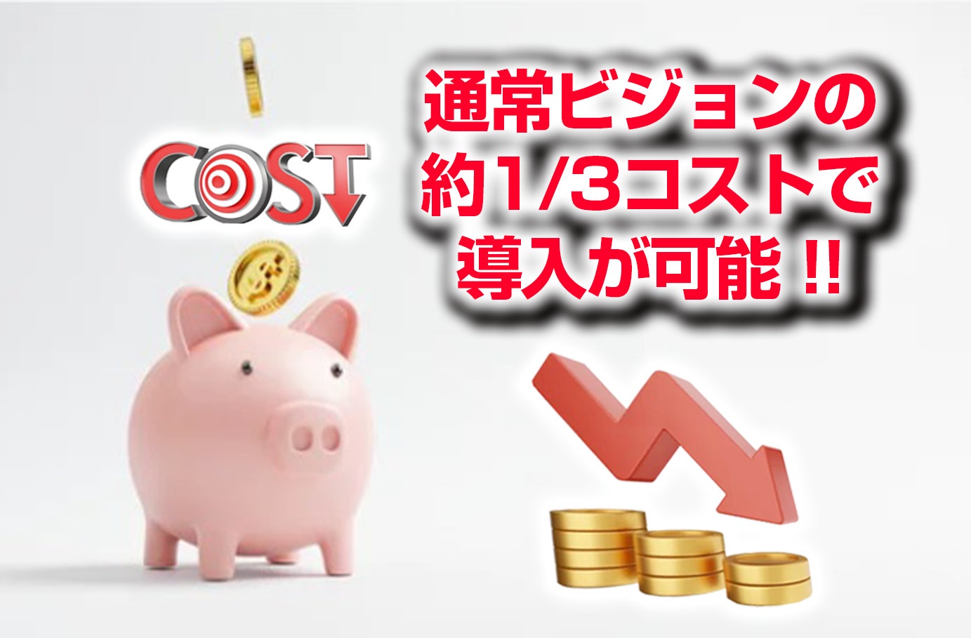 また最大の特徴として、設置コストが他のサイネージと比べて低コストで、通常の1/3程度で導入頂けます。