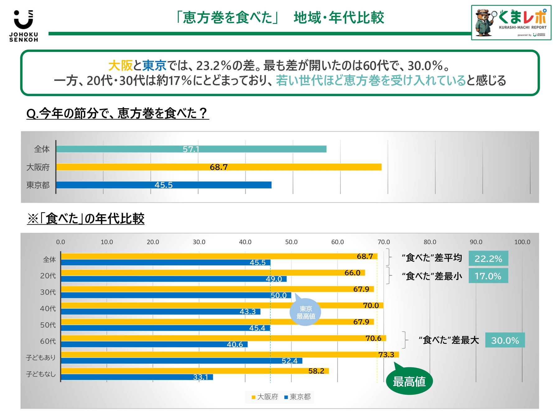 ・大阪68.7%、東京45.5%で23.2%の差