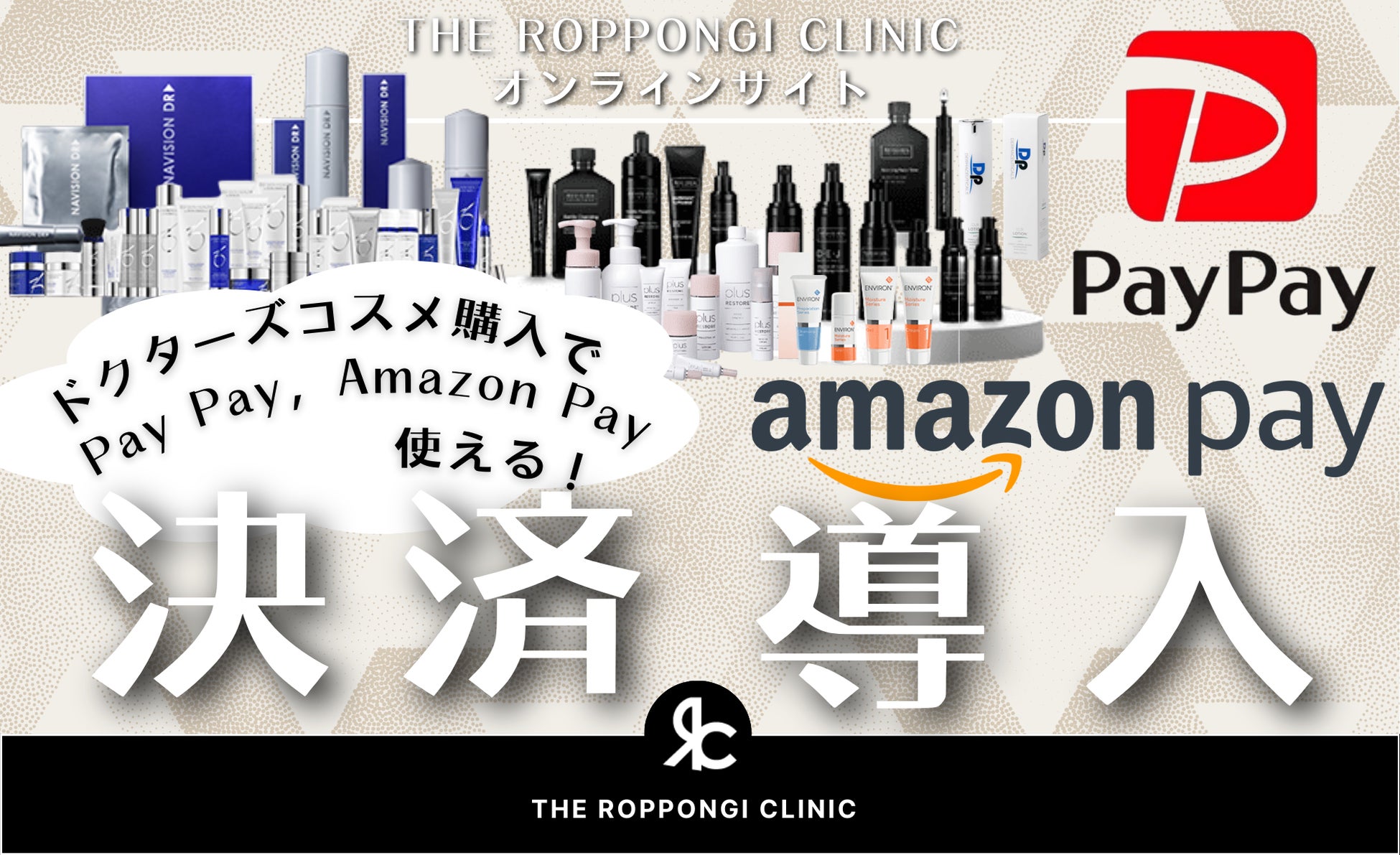 大人気ドクターズコスメがPayPayやAmazon Payで購入出来る!THE ROPPONGI CLINICのオンラインショップに新しく決済方法を導入いたしました。