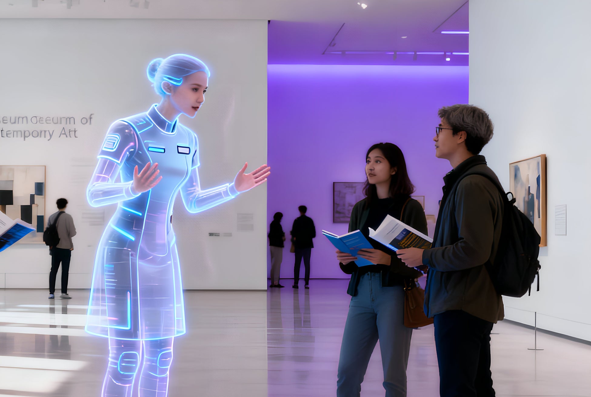 来場者が作品横のQRコードを読み取るだけで、ARによる作品解説を楽しめます。さらにAIが対話形式で、作家の背景や関連作品など多角的に情報を提供します。ひとりひとりの関心に応じた深い学びを実現すると同時に、施設スタッフの案内の負担を軽減し、来館者満足度を高めます。