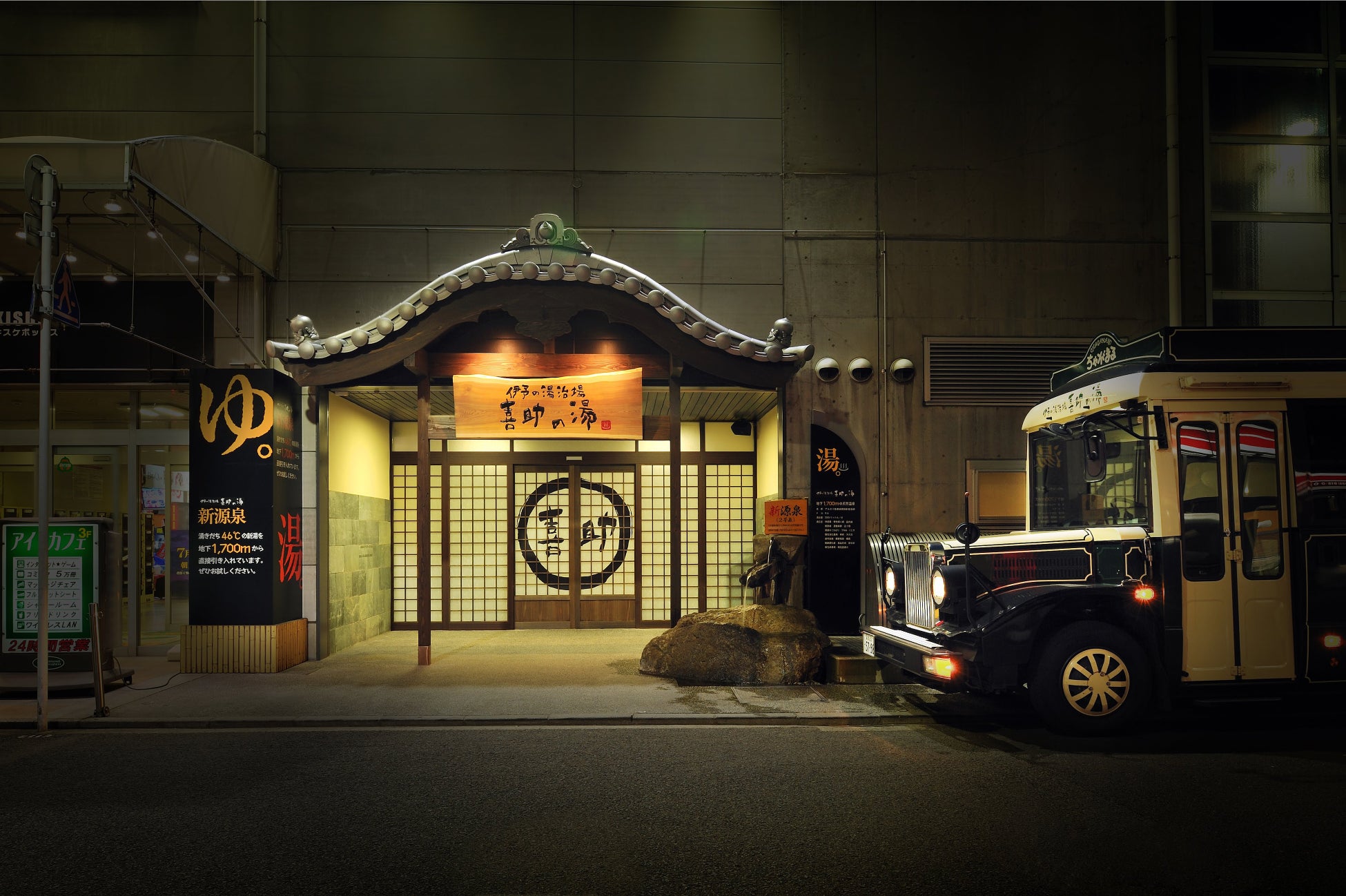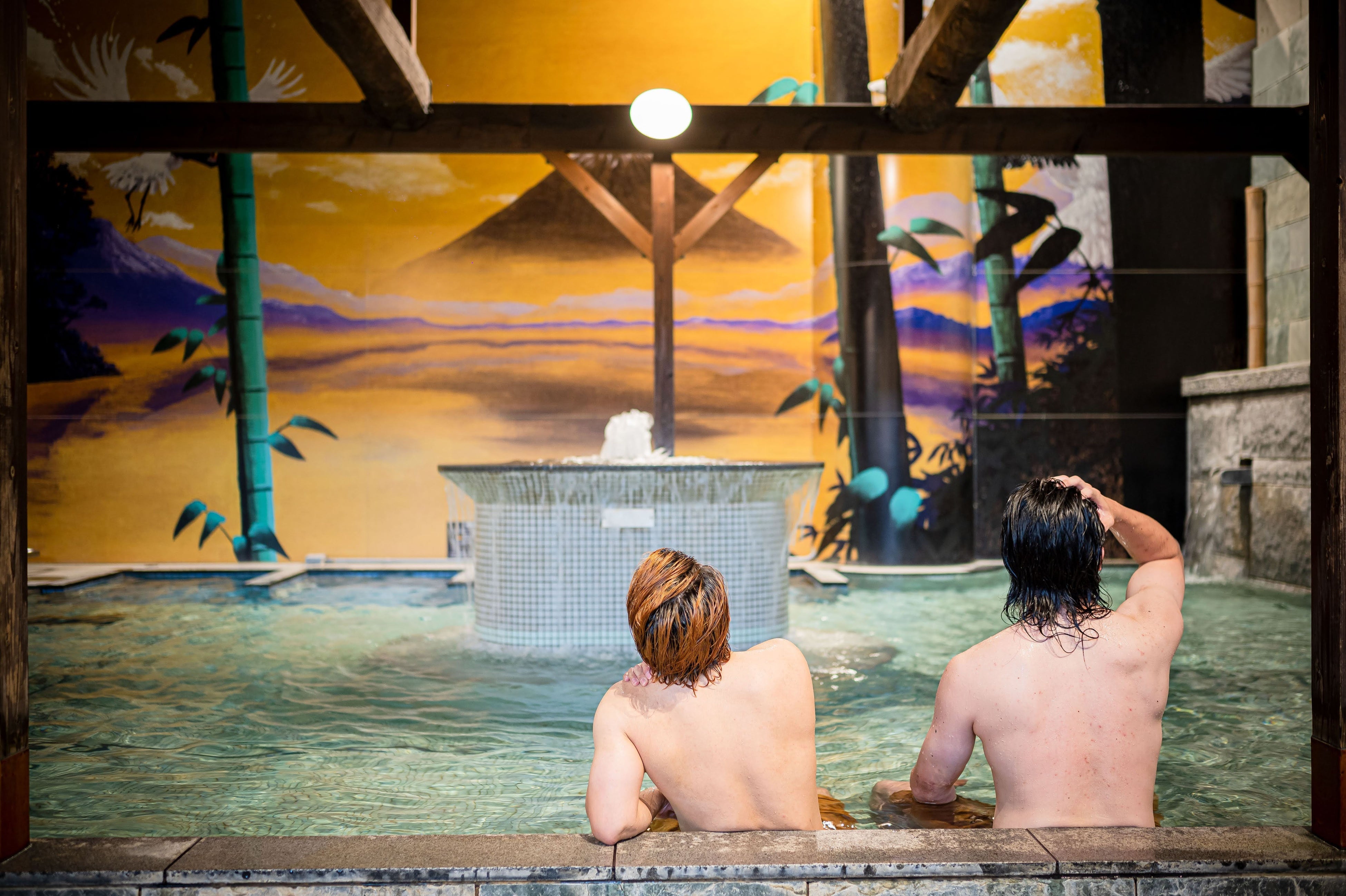 和の雰囲気に包まれる館内は、どこか懐かしい世界観。高濃度炭酸泉が人気の浴場は、西日本最大級の広さを誇ります。2020年8月には、四国最大級の岩盤浴「喜助の蒸」を温泉2階エリアを増床しました。さらに、韓国サウナ「汗蒸幕」(はんじゅんまく)など5つの異なるサウナを開業しています。