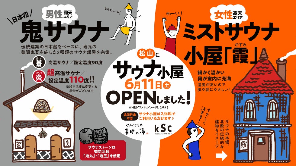 2022年6月には、愛媛の伝統工芸で鬼瓦で名高い「菊間瓦」の窯元とコラボし、“鬼”をコンセプトにした「鬼サウナ」や、北欧の建物をイメージしたミストサウナ小屋などをオープン。全国のサウナファンが“巡礼”に来ることから、一部メディアより「四国サウナの聖地」と評されています。