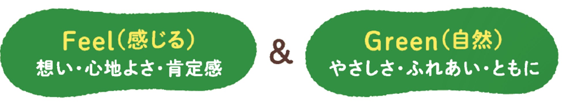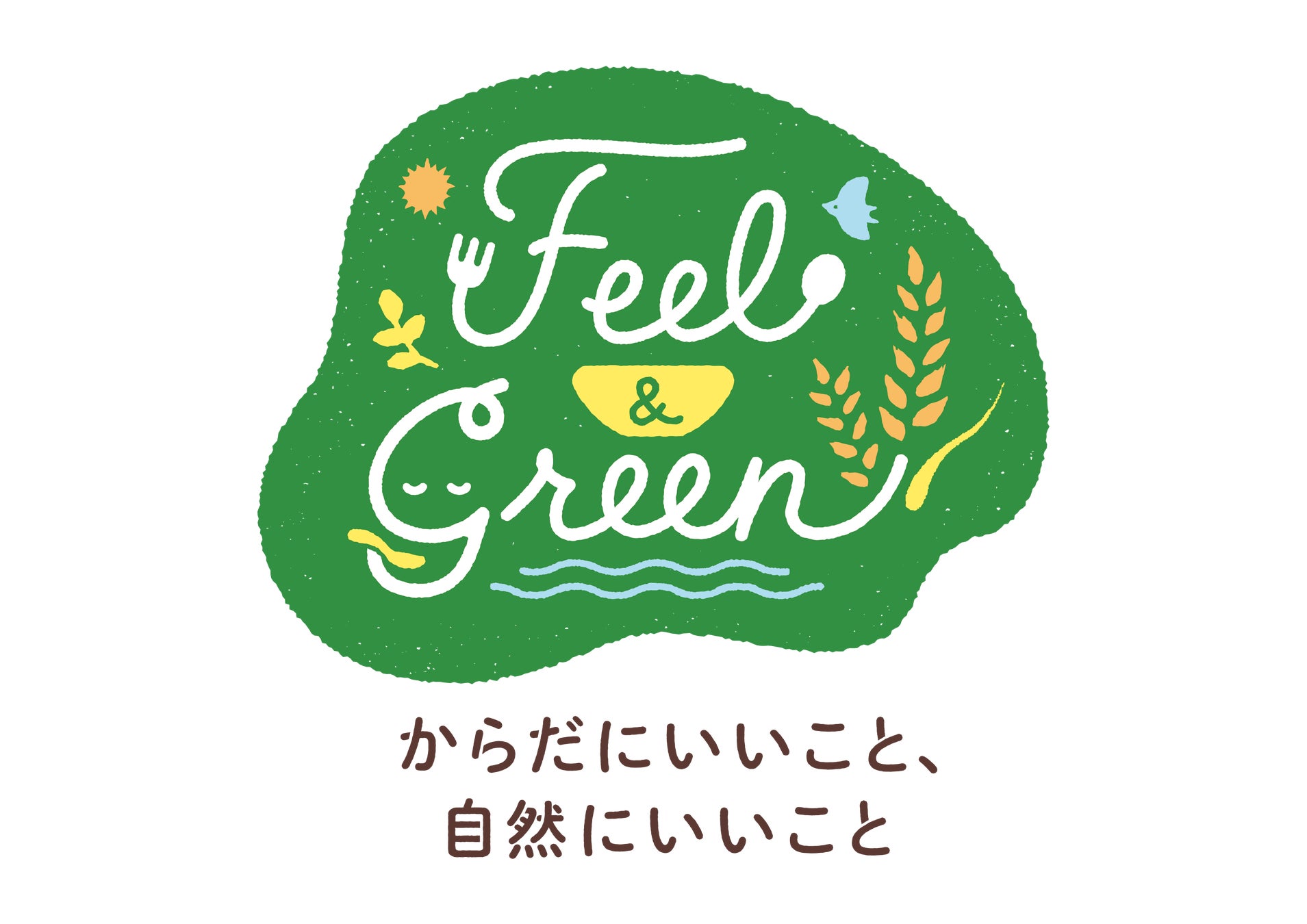 Feelフィール(感じる)は「想い・心地よさ・肯定感」、Greenグリーン(自然)は「やさしさ、ふれあい、ともに」という気持ちを表現しています。「からだにいいこと、自然にいいこと」は健康に良いことは、自ずと自然にも良いとことであるという、フィール&グリーンの基本理念を表しています。