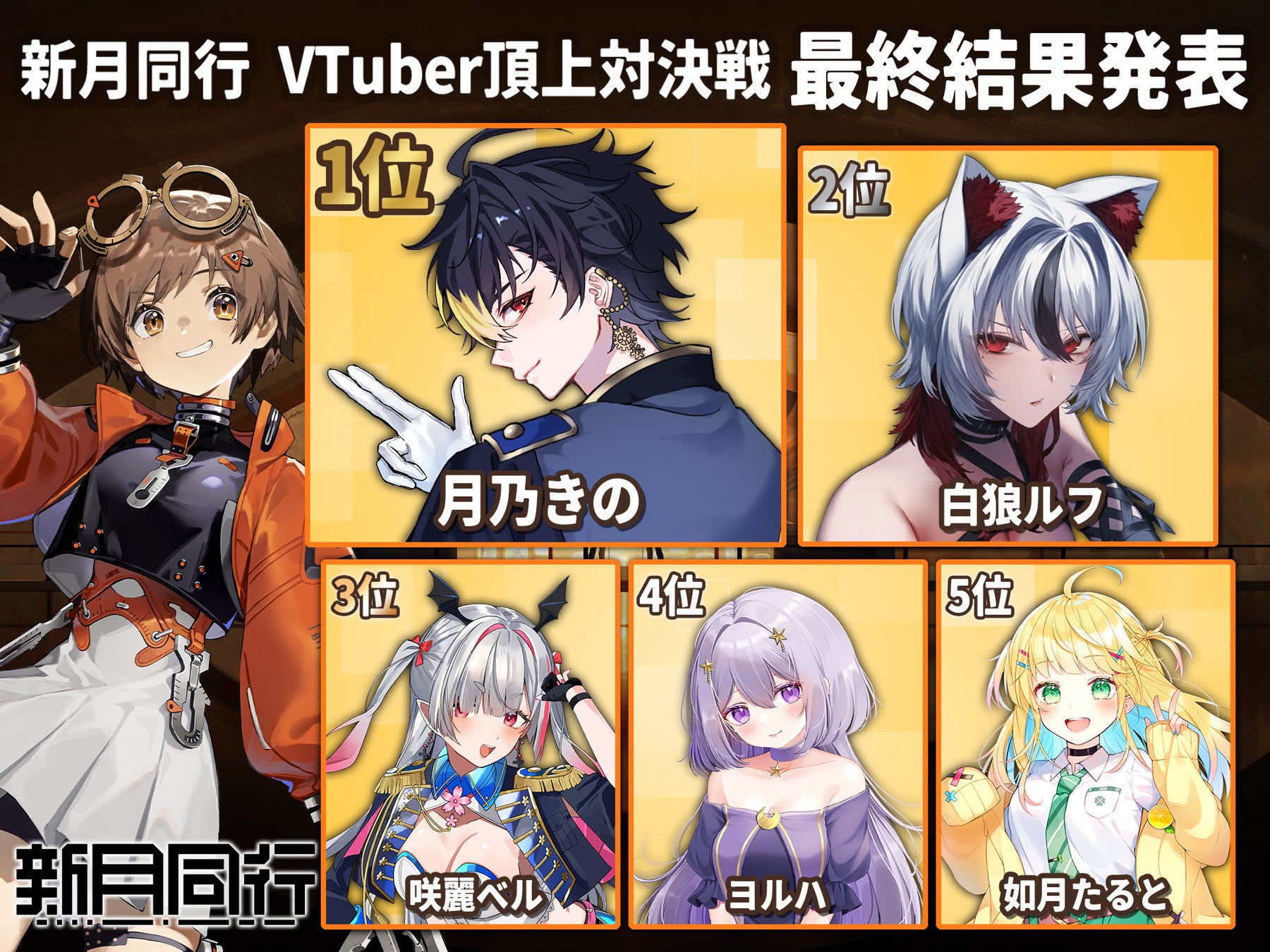VTuberと視聴者が一体となって盛り上がりを見せた「『新月同行』VTuber頂上対決戦」は、数々の名シーンを生み出し『新月同行』の世界観をより身近に感じさせるイベントとなりました。本記事では、その中でもひときわ輝きを放った上位入賞者5名に焦点を当て、その活躍ぶりをご紹介します。