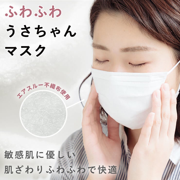 【累計販売枚数500万枚を突破】ふわふわうさちゃんマスク コットンのような優しい肌ざわりで大人気