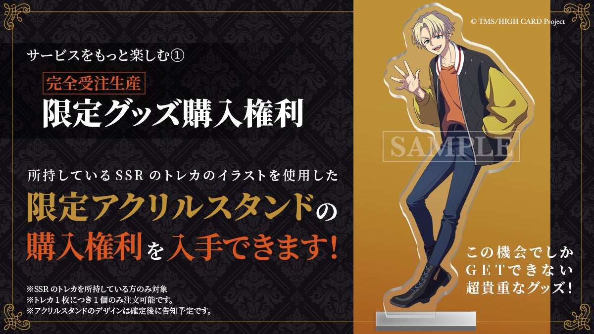 「HIGH CARD デジタルトレカコレクション」を利用していない人は手に入れることができない、運によってではなく交換に必要なカードを集めた人だけが、早い者勝ちで入手できる限定グッズです!
