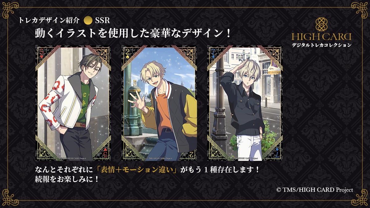 プレイシンクが企画開発と運営を行う本プロジェクトは、『HIGH CARD』のスタイリッシュな世界観と出演キャラクターの魅力をそのままに、オリジナルの描き下ろしイラストや映像作品中の名場面をコレクターアイテムとして集めたり、交換したり、コレクションをお披露目したりして楽しめるサービスとなっています。